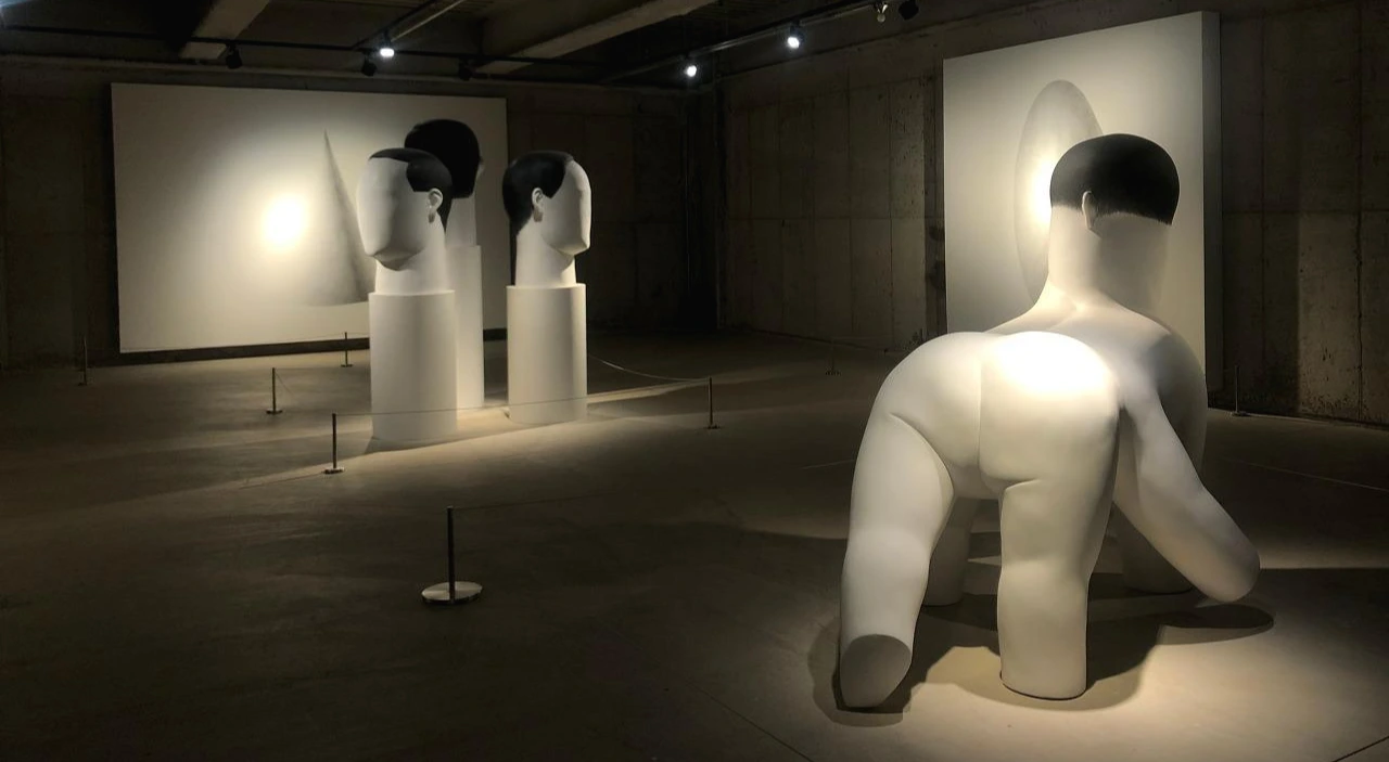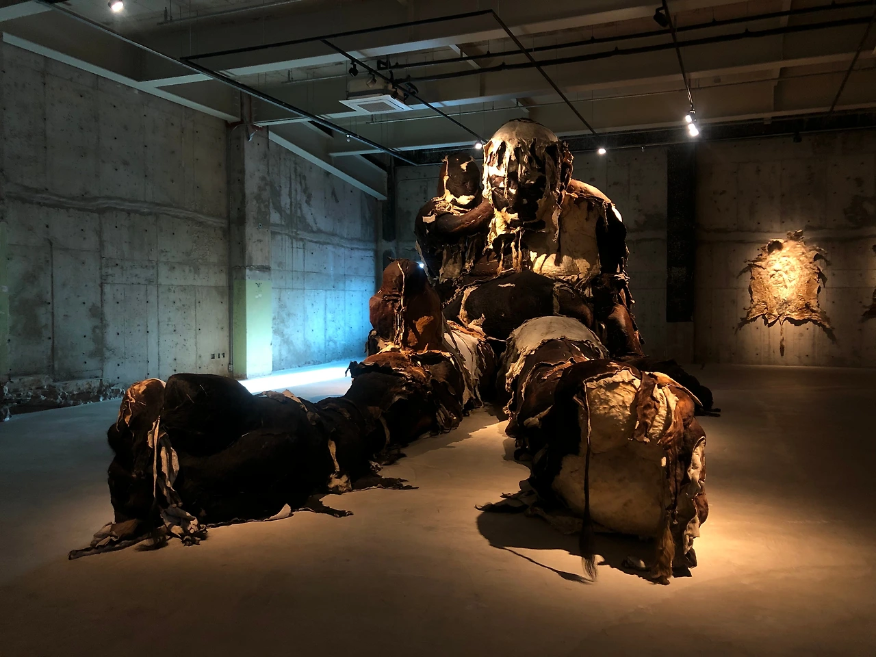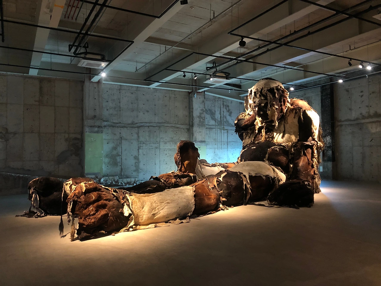 하나의 상영관이었을 공간을 압도적인 크기로 자리 잡고 있는 장환의 '영웅 No.2', 소가죽으로 뒤덮여있는 사람 형태의 영웅이 무엇을 의미하는지에 대한 생각보다는 이 거대한 작품을 어떻게 옮기고 설치했을까?라는 생각이 먼저 들었다.