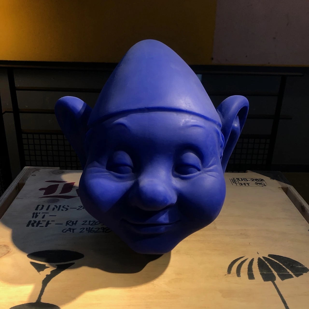 폴 맥카시 <난쟁이 머리(파랑), 2000, platinum-based silicone and wood crate>