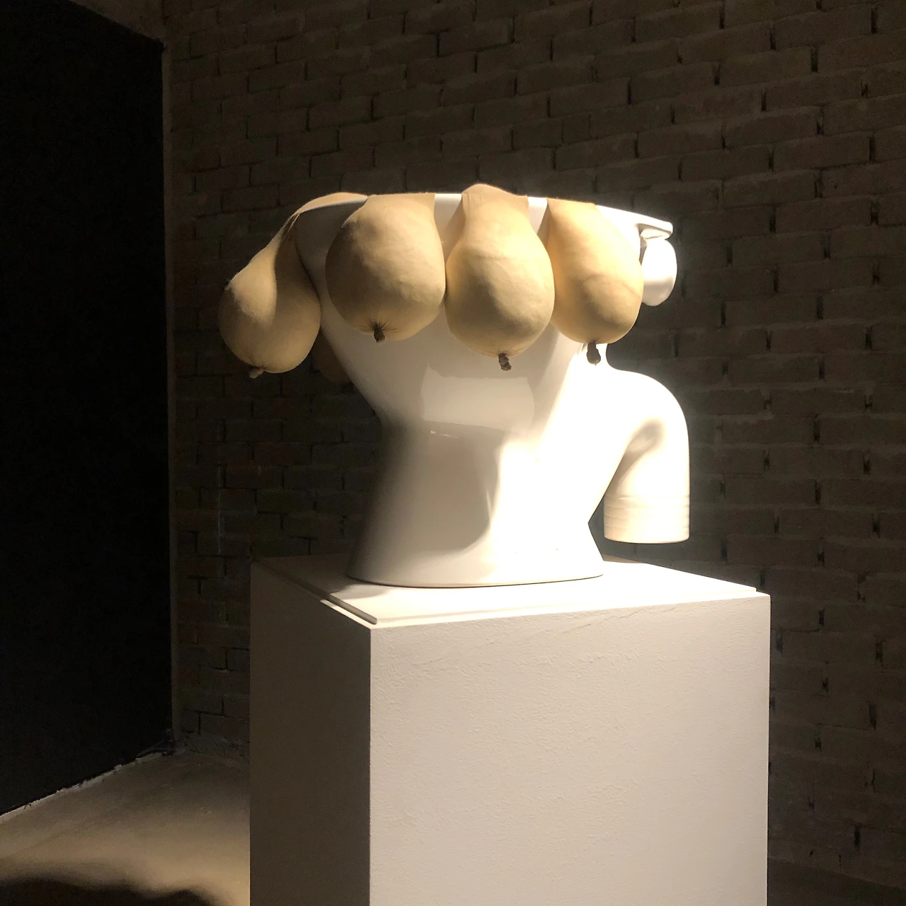 스타킹과 변기 등 일상에서 쉽게 볼 수 있는 재료들을 성적인 상징물로 전환시킨 메머리루루