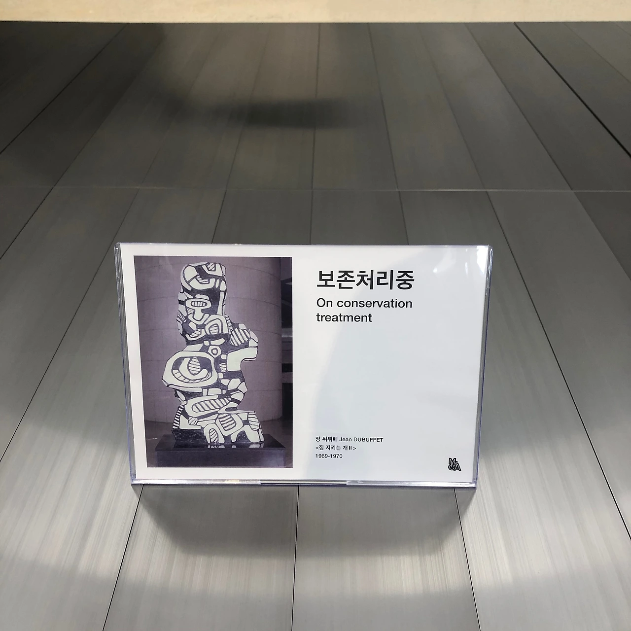 물을 한 모금 삼키고 짐을 보관한 뒤 팸플릿을 챙겨 '국내 최초의 개방 수장고'를 마주했다. 사립미술관이 아니라 해낼 수 있는 전시가 아닐까 라는 첫인상을 받았다. 물건 등을 거두어서 깊이 간직한다는 수장(收藏)이라는 뜻에 반하는 것부터가 예술로 다가왔다. 기증 혹은 세금으로 구매한 작품들이 이케아의 가구들처럼 진열되어있다. 다른 전시로 자리를 비운 작품, 보존 작업 중인 작품 등 각자의 이유로 몇몇은 비어있었고 온, 습도 조절을 위한 장비들이 날 좀 보소 하며 자리 잡혀있다.