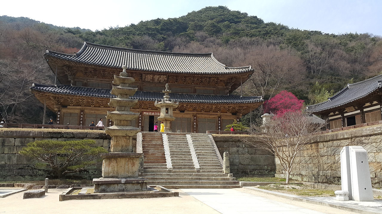 그렇게 예경을 하고 나왔더니 사람들이 우글우글 몰려있는 것이 보인다. 그 유명한 화엄사 홍매화가 사람들의 마음을 사로잡고 있었다. 걸음을 옮겨 매화 앞에 갔는데 그 아름다움이 눈에 들어오지 않았다. 그저 유명한 꽃나무라는 생각만 들었던 것 같다. 이건 아무래도 각황전의 규모와 권위에 이미 놀란 후여서 그랬던 것 같다. 통으로 뚫려있는 각황전 내부는 마치 다른 세계에 온 것 같은 착각을 줄 정도로 웅장했다. 그 여운이 가시지 않았기에 홍매화가 눈에 잘 안 들어온 것인지 지금 보고 듣고 느끼고 싶은 것은 울긋불긋한 꽃이 아니라 여래의 스침이어서 그랬을지 알 수 없다.