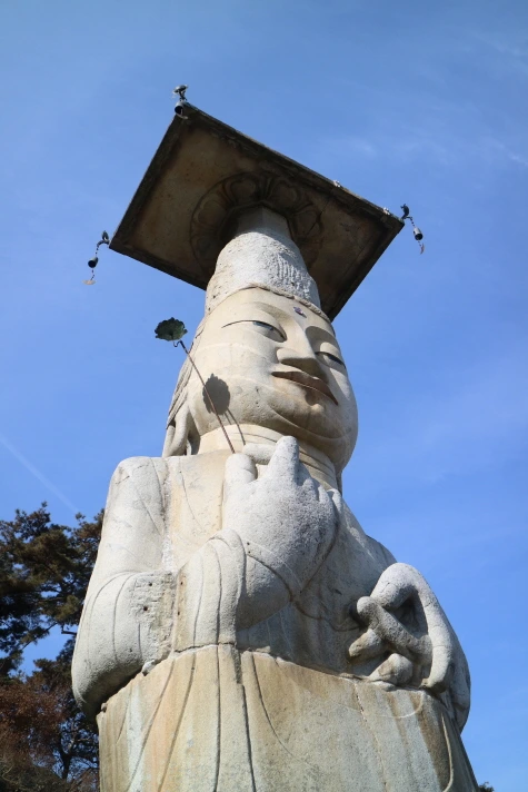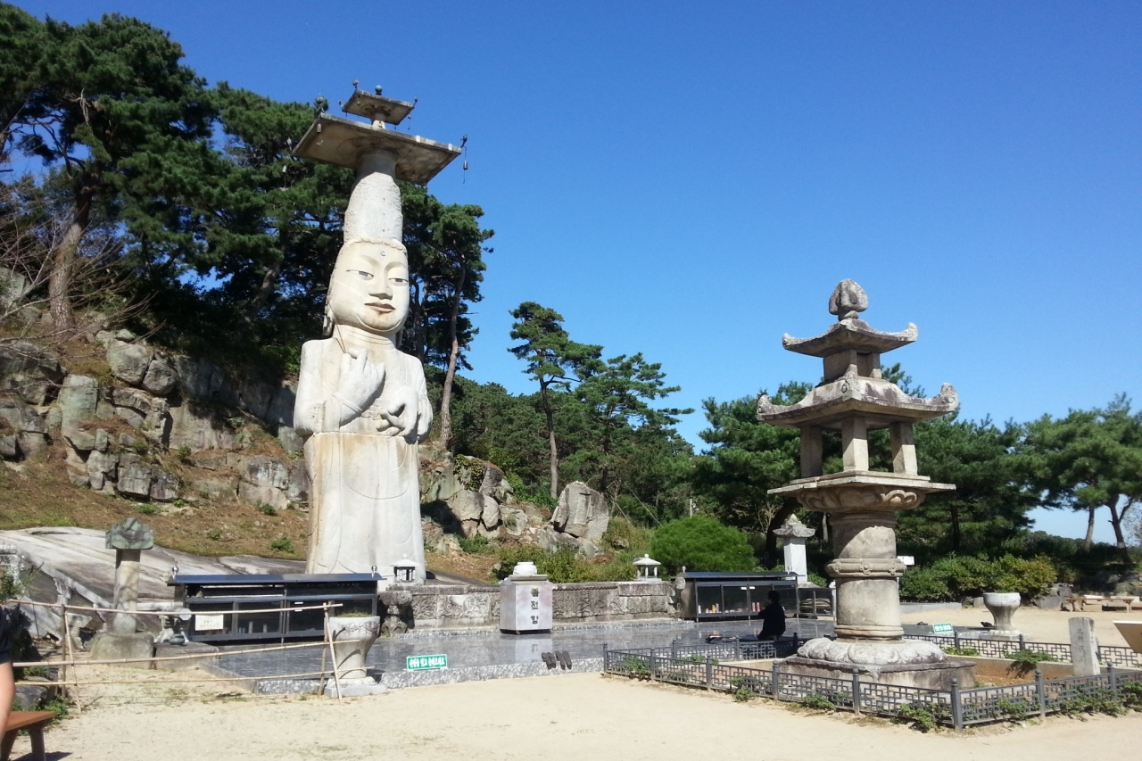 관촉사 미륵보살입상 (사진출처: 국가유산포털)널따란 마당에 서서 커다란 눈을 올려다보는 순간 옴짝달싹도 할 수 없었다. 짙은 눈동자가 아무도 모르는 나의 비밀을 안다는 듯 내 가슴을 관통하고 지나가는 것 같았다. 무서웠다. 내 잘못을 모두 들킨 것 같아서 어디론가 숨고 싶었다. 그러나 커다란 눈은 내가 어디에 몸을 감추든 나를 따라와 괴기스럽게 웃고 있었다. 관촉사 미륵보살입상과의 첫 만남은 그랬다. 이런 걸 그로테스크하다고 표현하지 않나.