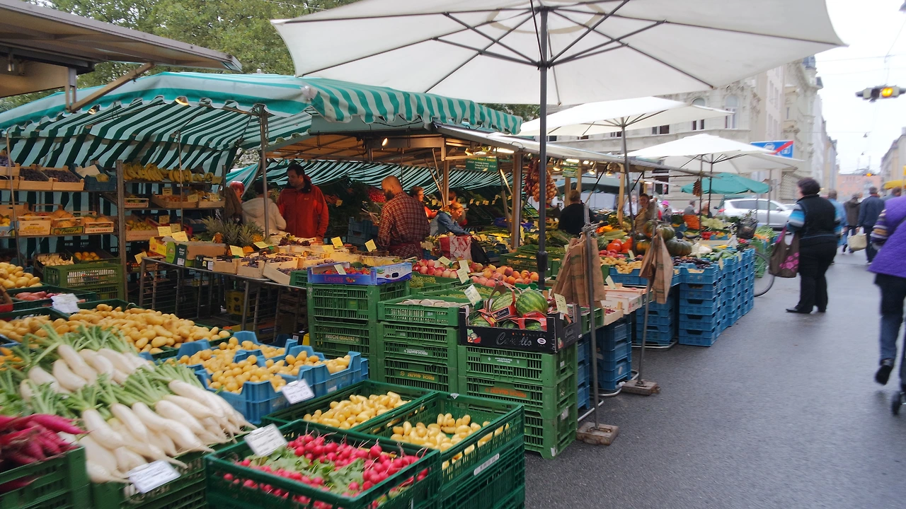 가는 길에 갑자기 나타난 장터는 무척 신기한 광경이었다. 천막 아래에서 싱싱한 야채와 과일들, 치즈, 햄, 각종 식료품들을 가득 팔고 있었다. 잘츠부르크에서 일주일 정도 살아볼 기회가 생긴다면 여기서 재료를 듬뿍 사서 요리를 해먹을 수도 있겠다 싶었다. 하지만 다시 생각해보니 어짜피 혼자라서 재료들을 사봤자 잔뜩 남고 처치곤란, 한국에서처럼 결국은 사먹겠지? 흐흐.