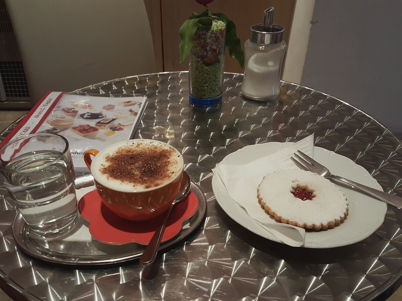 걷다가 어느 조그만 카페 안으로 들어가 구석진 곳에 자리잡고 따뜻한 카푸치노 한 잔을 시켰다. 잔을 들고 카푸치노를 한모금 목구멍으로 넘기니 따뜻한 우유 거품에 온 몸이 녹는 듯 했다. 칙칙한 날씨의 연속이던 잘츠부르크, 그래서 그런지 따뜻한 음료들이 더욱 맛나게 느껴졌다. 카푸치노와 함께 커다란 쿠키가 덤으로 나왔는데 출출했던터라 너무 맛있었다. 이런 걸 바로 인생쿠키라고 하는 것일꺼야, 일기장을 꺼내어 끄적끄적 잘츠부르크에서의 생각들을 기록해 두었다.