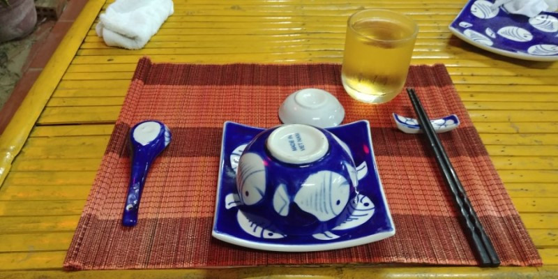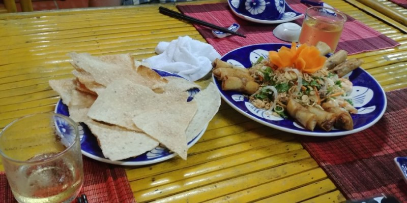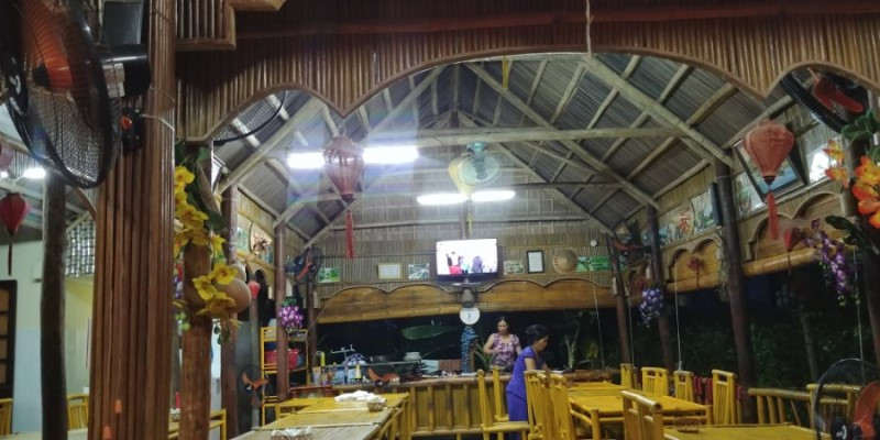 대나무배를 타고 가서 도착한 곳은 어느 식당이었다.