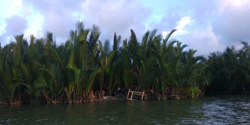 좌우로 열대의 나무들이 가득한 강가에 왔을 때 큰 배에서 대나무 배로 갈아탔다.