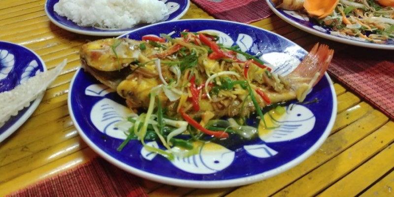 생선 찜과 모닝글로리 볶음, 바나나플라워 샐러드 등이 차례로 나왔다.