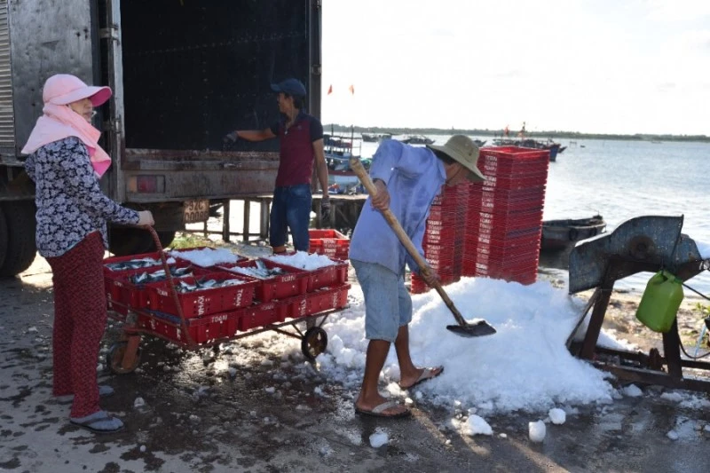 마을 사람들은 부지런히 상자 속에 얼음을 채워넣고 있었다.