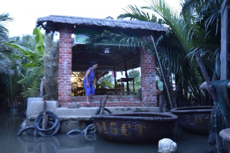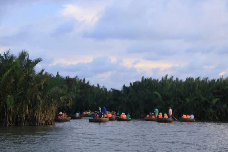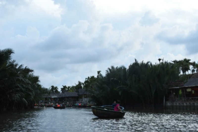 컴컴해지는 하늘과 함께 대나무배 노를 열심히 저으며 가이드를 쫓아 갔다.