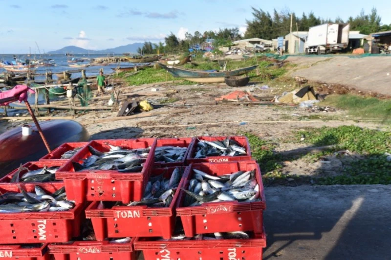 푸릇한 비늘이 반짝이는 생선들이 상자마다 가득했다.
