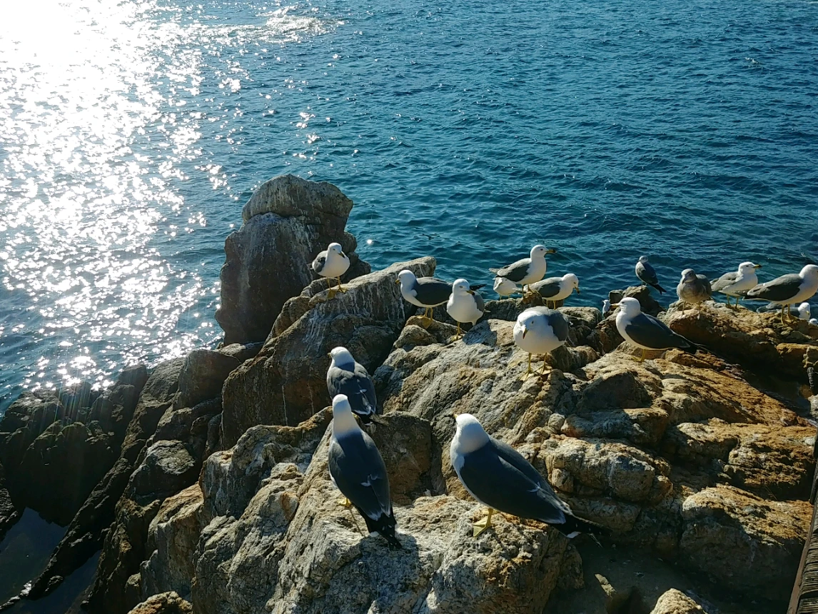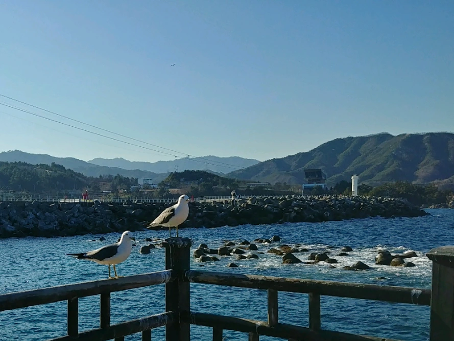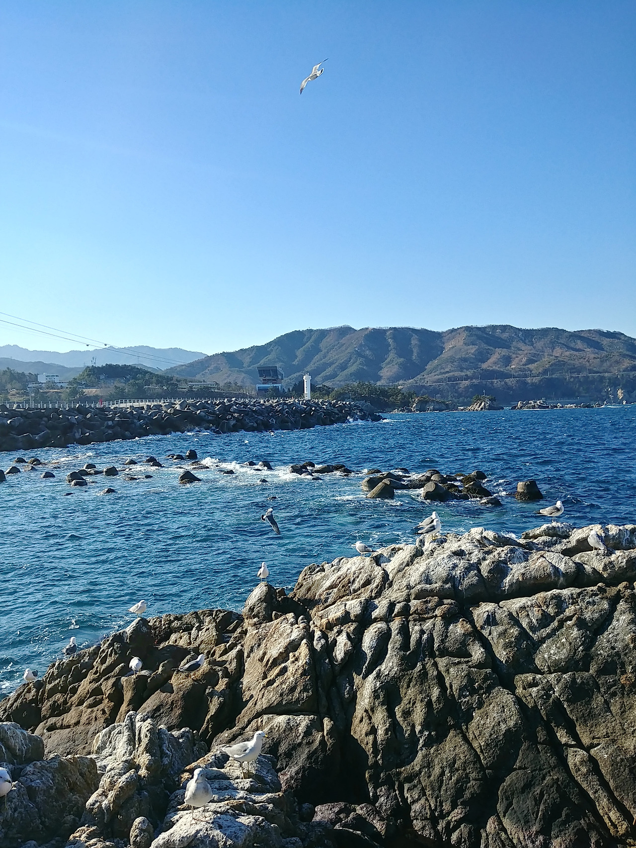 장호항 바다의 아름다운 빛깔 말고도 기억에 남는 것은 엄청난 수의 갈매기들이다. 사람들이 주는 새우깡을 먹으려고 기다리고있는 것이다. 새우깡을 던져줄 때마다 갈매기들이 달려들었다. 곳곳에는 새똥의 흰 자국들이 가득했다. 이렇게 길들여진 갈매기들을 보니 마음 한구석이 씁쓸했다. 그래도 새우깡이 없었으면 이런 진풍경은 볼 수 없었을 것이다.