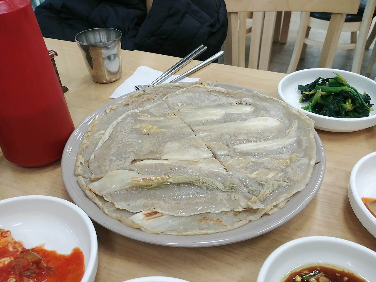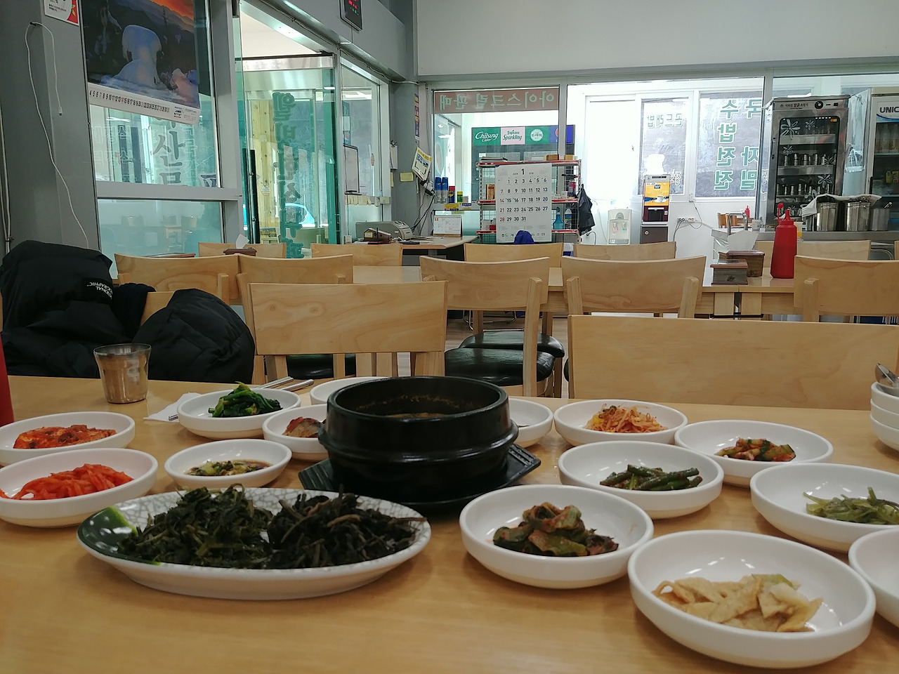 환선굴로 가는 길에 많은 식당들을 보았다. 경험상 산 근처에 있는 식당들 치고 맛없는 집이 없더라. 때문에 별다른 고민 없이 깨끗해 보이는 식당에 곧장 들어갔다. 결과는 대성공! 산채정식과 감자전, 메밀전을 시켰는데 저렴하고 양도 푸짐하고 무엇보다 맛있었다.