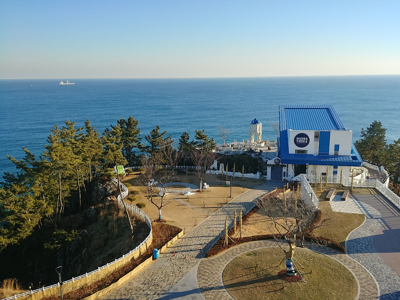 짙푸른 바다와 구름 한 점 없는 쨍하게 파란 하늘에 더해진 강렬한 태양! 지금이 마치 한여름인양 느껴지게 했다. 피부에 와닿는 공기는 차갑지만 눈으로 보이는 풍경은 시원하면서도 따뜻했다.