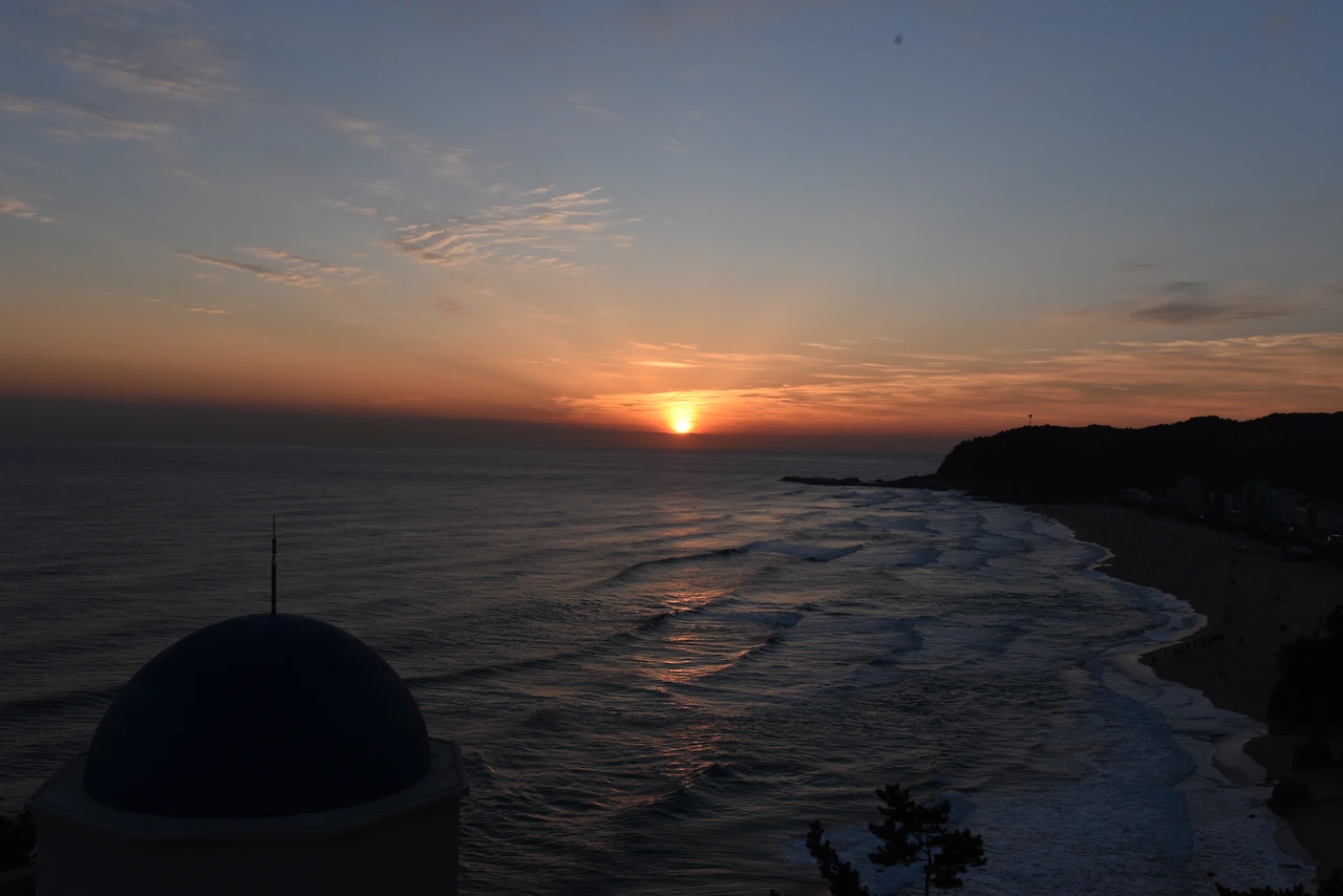 구름을 넘어 해가 뜨고 짙은 태양빛이 바다 위를 비춰 붉은 길을 열었다. 일출은 언제 보아도 감명깊다. 높은 건물들로 빽빽한 도시생활 속에서 뜨고 지는 해를 보기란 쉽지 않다. 또 대부분의 시간을 회사에 앉아있으니 시간의 변화를 느끼기가 힘들다. 그래서 더욱 더 소중하게 느껴지는 장면들일까?