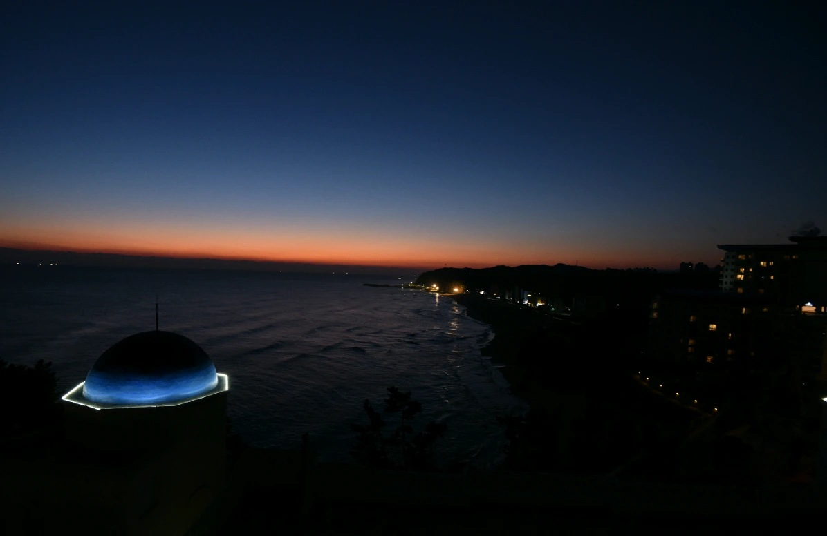 이른 새벽 어스름에 눈을 떠보니 창문 너머로 여명이 떠올랐다. 수평선 근처는 붉게 타올라 하늘빛이 신비롭게 변해갔다. 잠이 홀딱 깨서 얼른 옷을 추려입고 창을 열고 테라스로 나갔다.