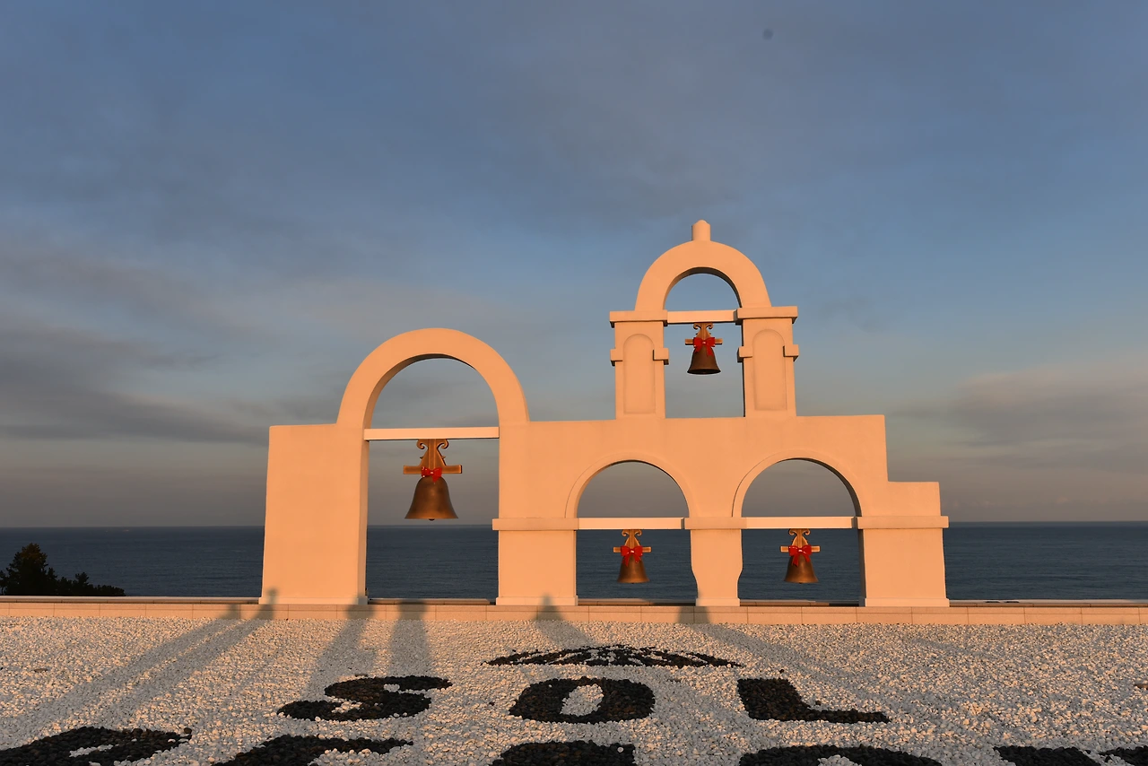 삼척 여행을 온 첫날에는 시간이 늦어진 터라 해질녘 쏠비치를 돌아보게 되었다. 산토리니 광장으로 가서 소원의 종탑과 조각상을 구경했다.