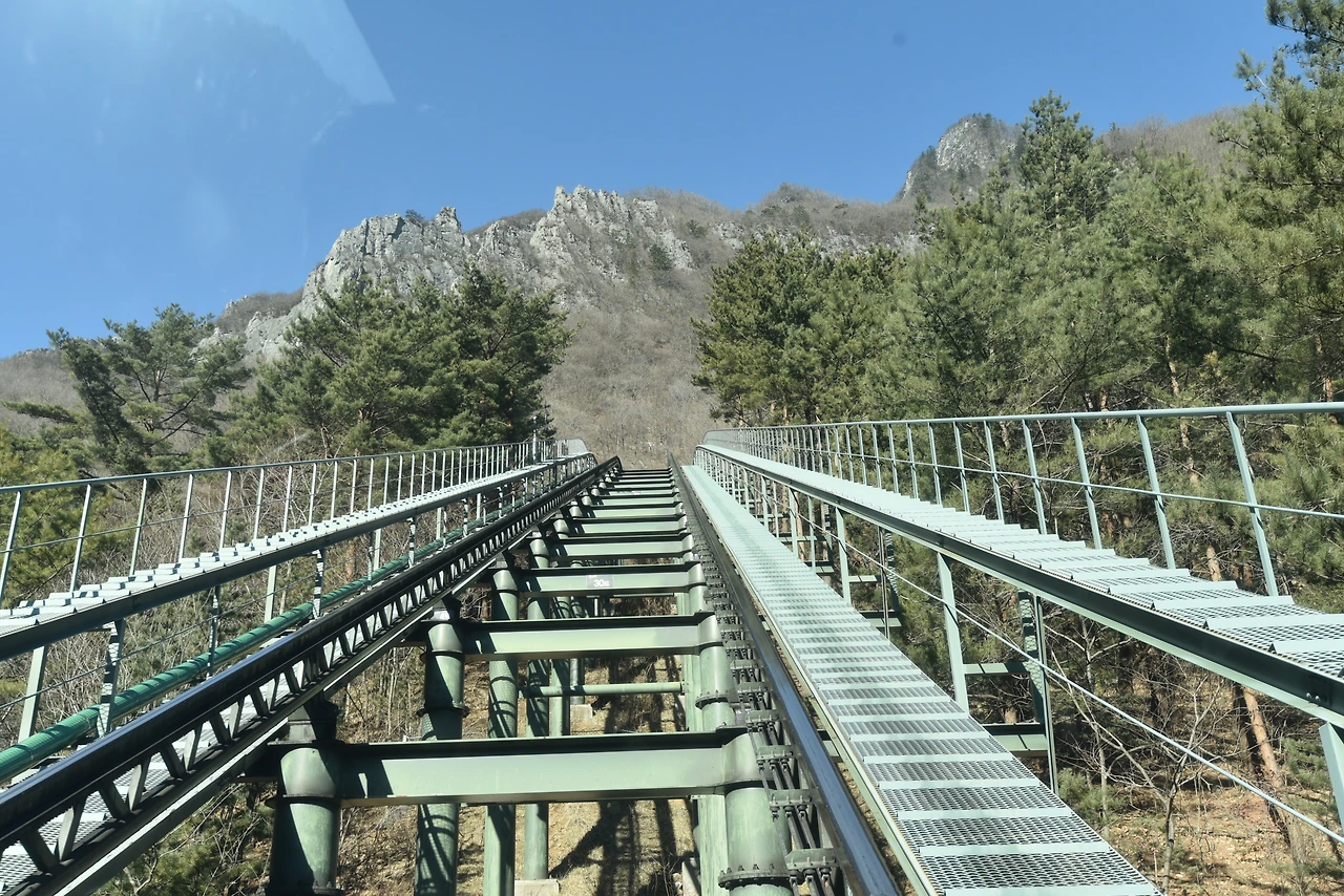 모노레일에 오르고 난 뒤 10분도 채 안되어 환선굴 입구에 도착했다. 높은 경사 때문에 은근히 무서웠다. 모노레일을 타고 산 위로 올라가면서 멀리 보이던 거대한 암산이 점점 가까워졌다. 이 높은 곳에 거대한 동굴이 있다니 신기했다.