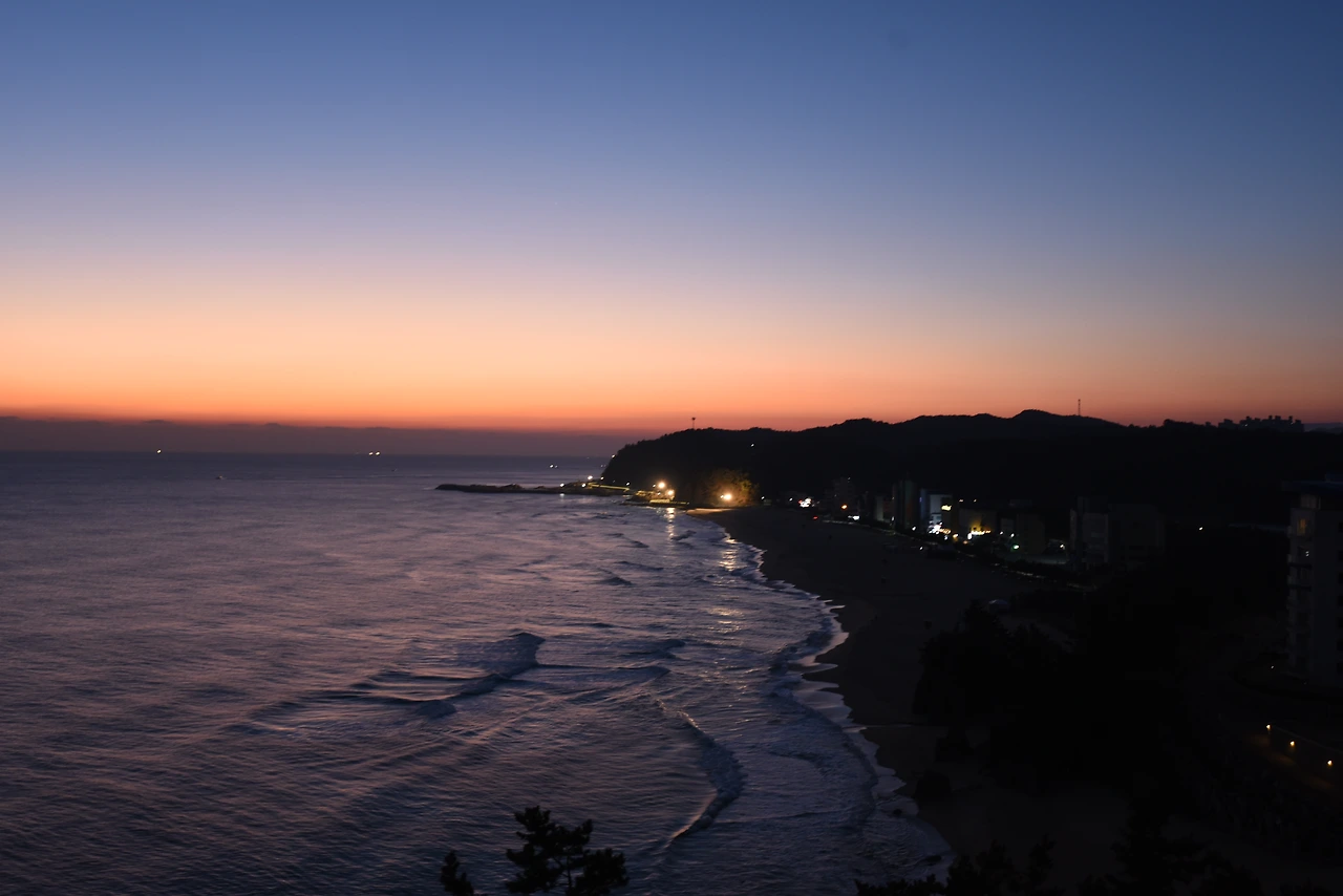 어둠이 빛으로 바뀌고 빛이 어둠으로 바뀌는 이 오묘한 시간. 프랑스에서는 이 시간을 개와 늑대의 시간이라 부른다. 멀리 비치는 그림자가 나를 반겨주는 개의 것인지 나를 해치려는 늑대의 것인지 구분할 수 없기 때문이다. 삼척 여행에서 가장 아름다웠던 순간들은 개와 늑대의 시간에 마주하게된 세상이었다.