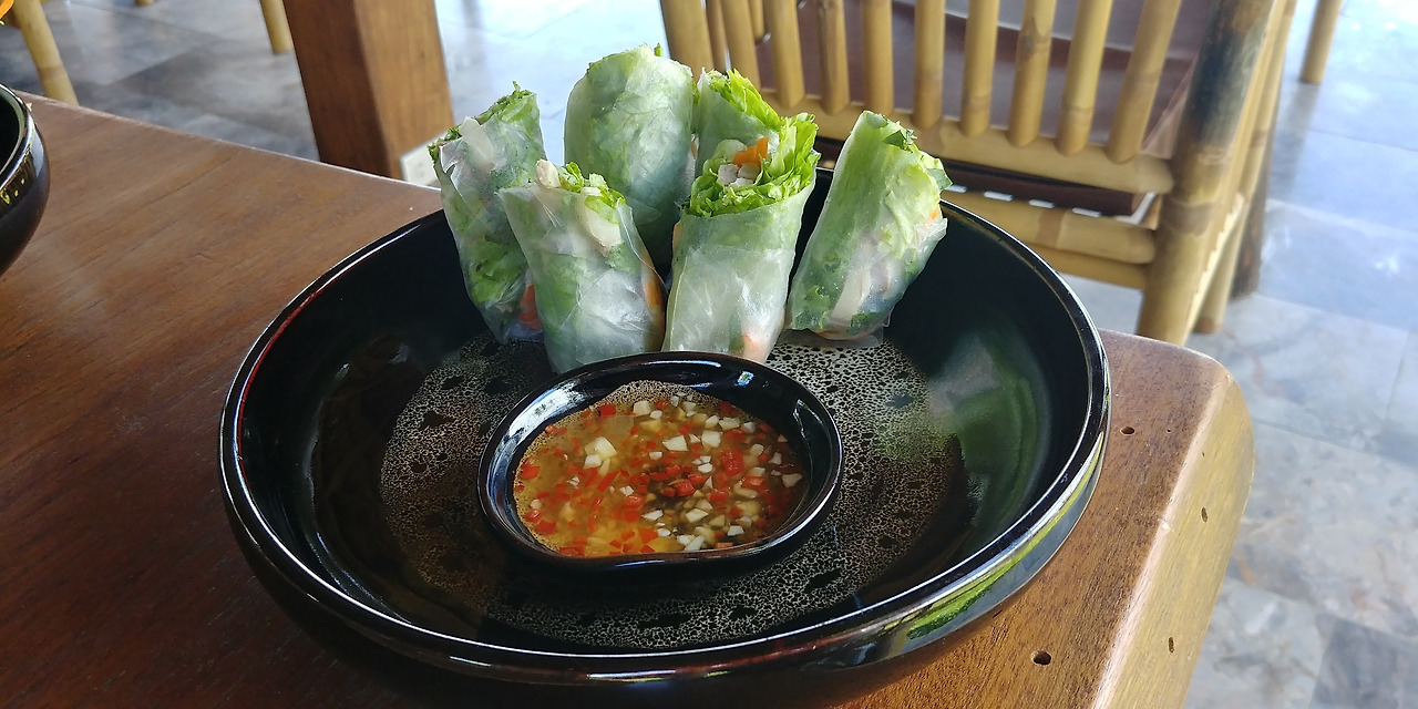 스프링 롤도 접시에 이쁘게 담아두었다.