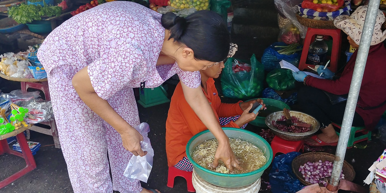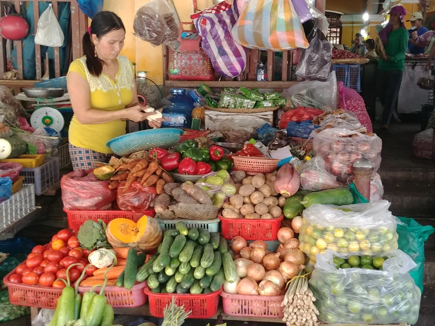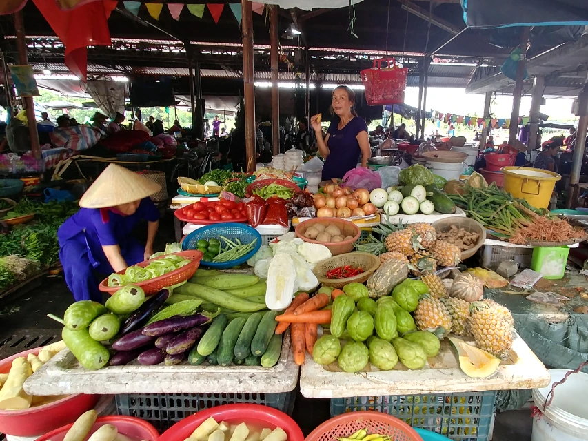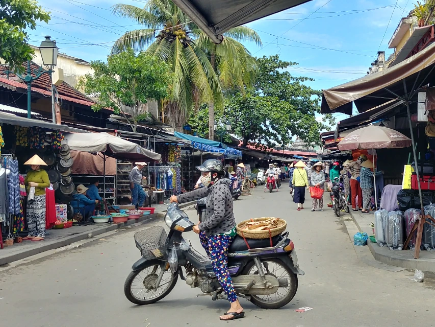 자전거를 타고 시골길을 달리고 달려 마침내 호이안 전통 시장에 도착했다.
