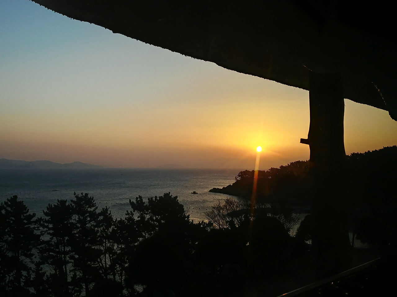 해가 뜨는 모습이 창문 너머로 보였다.
