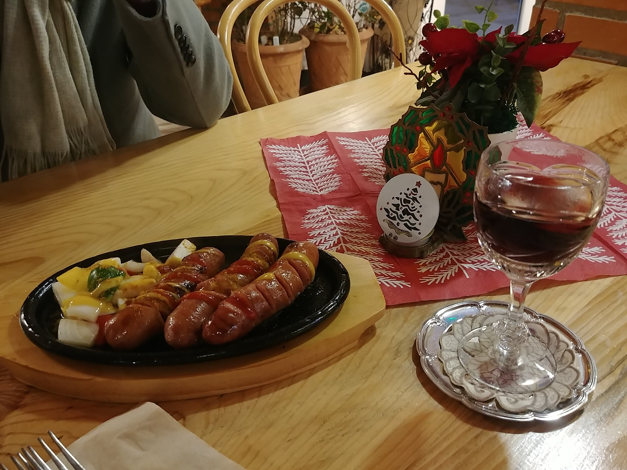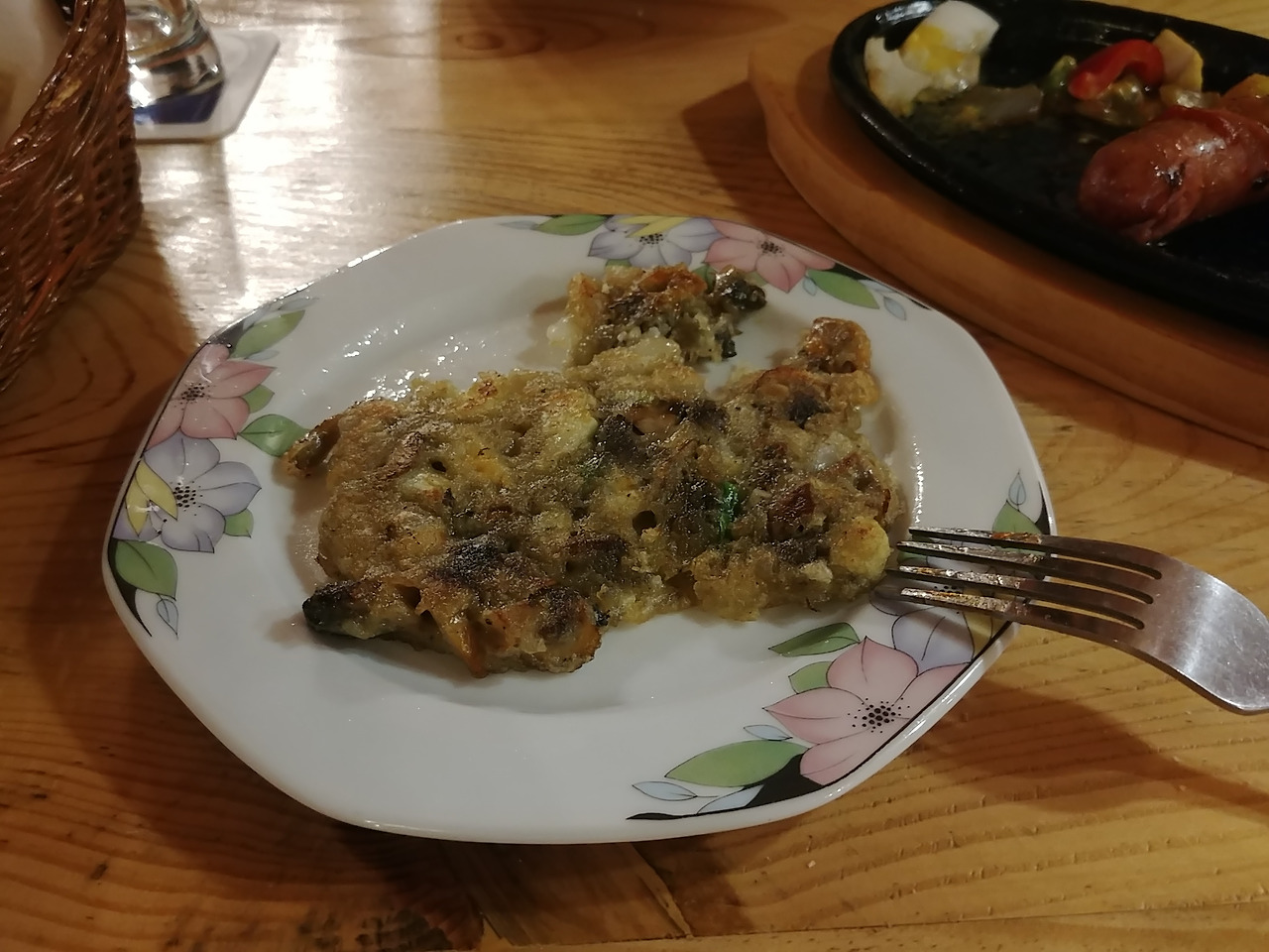 소시지와 뱅쇼, 맥주를 시켜 먹었는데 나중에 아주머니께서 맛 좀 보라고 전을 가져다 주셨다.