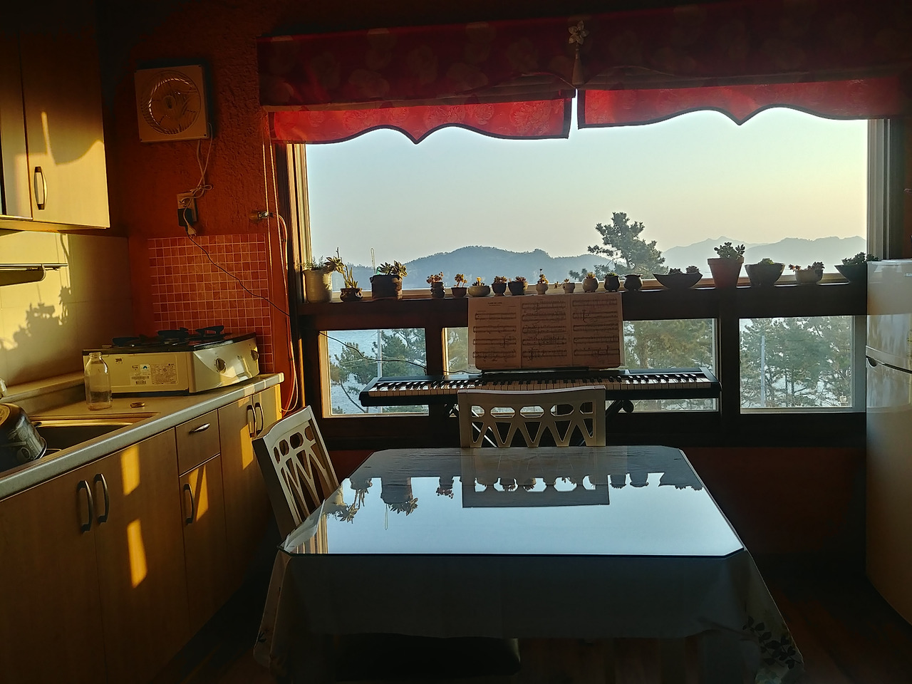 방금 떠오른 햇살을 잔뜩 받으며 피아노 연주를 해본다.