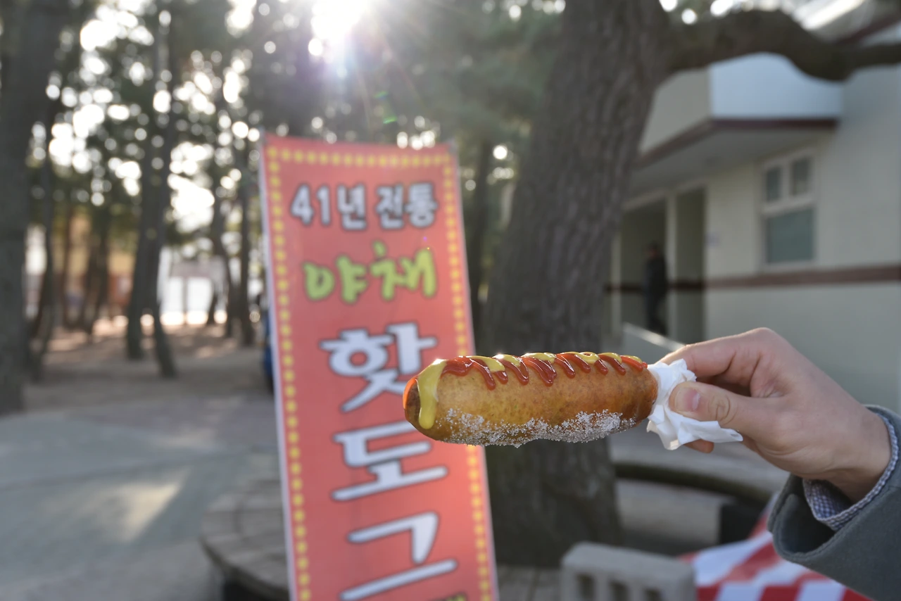 비치 입구에서 파는 야채핫도그를 먹으며 출출함을 달랬다.