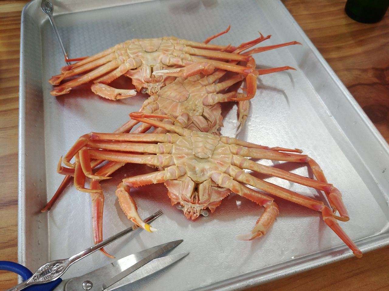 쟁반 위에 덩그러니 놓인 대게 세마리.