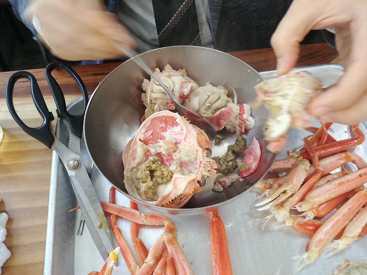 몸통 부분은 내장을 싹싹 긁어서 그릇에 담았다.