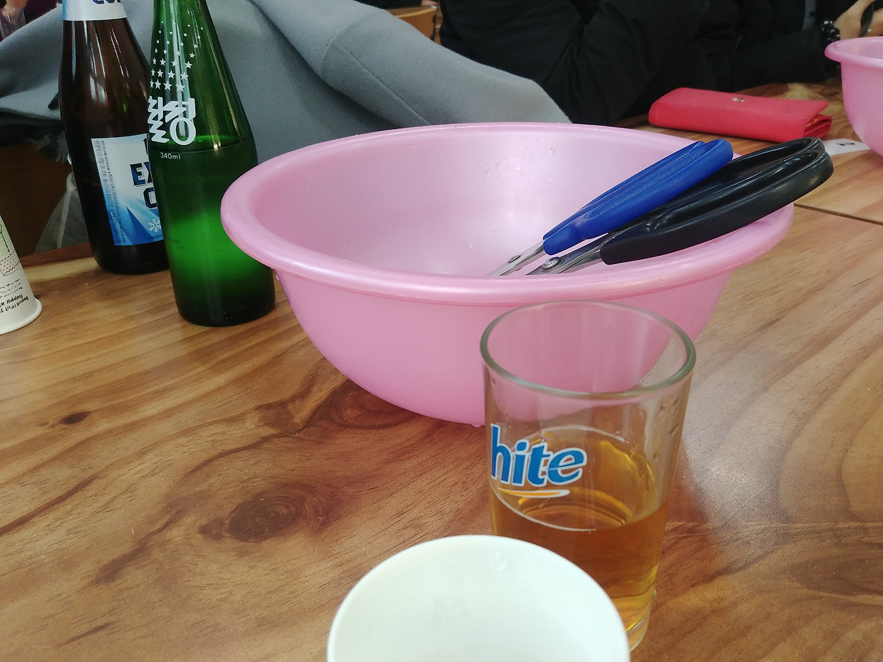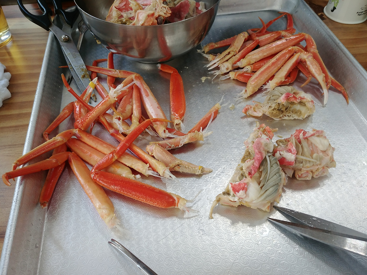 자리잡고 앉으면 아주머니께서 핑크 바구니와 해체 도구들(?)을 가져다 주신다.