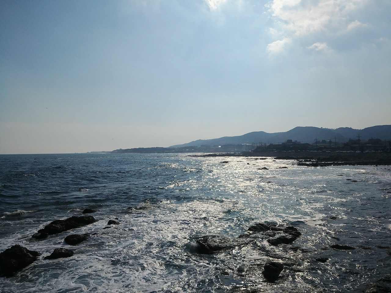 파도는 수없이 들이치며 손을 스쳐갔다.