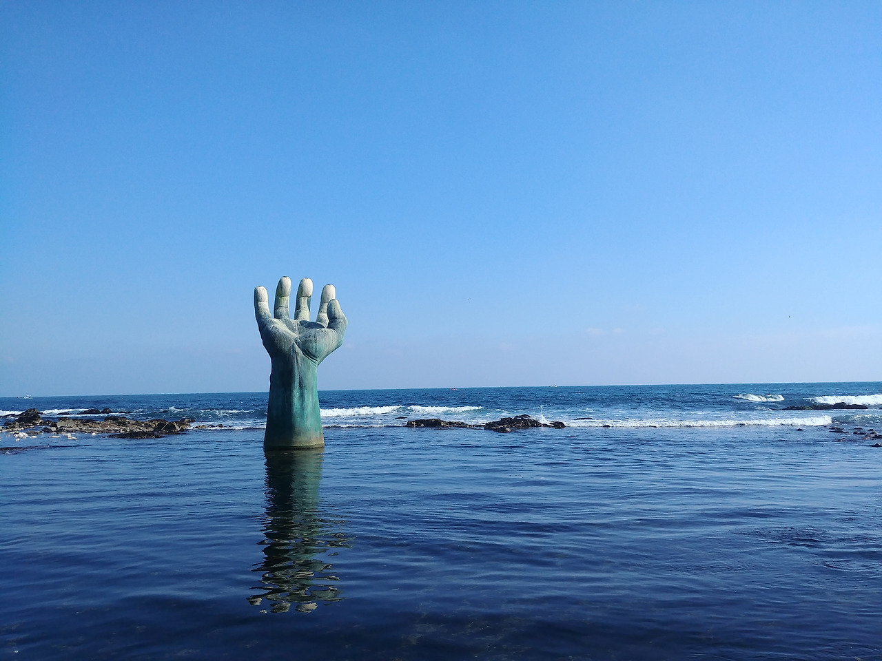 수평을 그리는 바다에 솟아오른 외로운 손 하나.