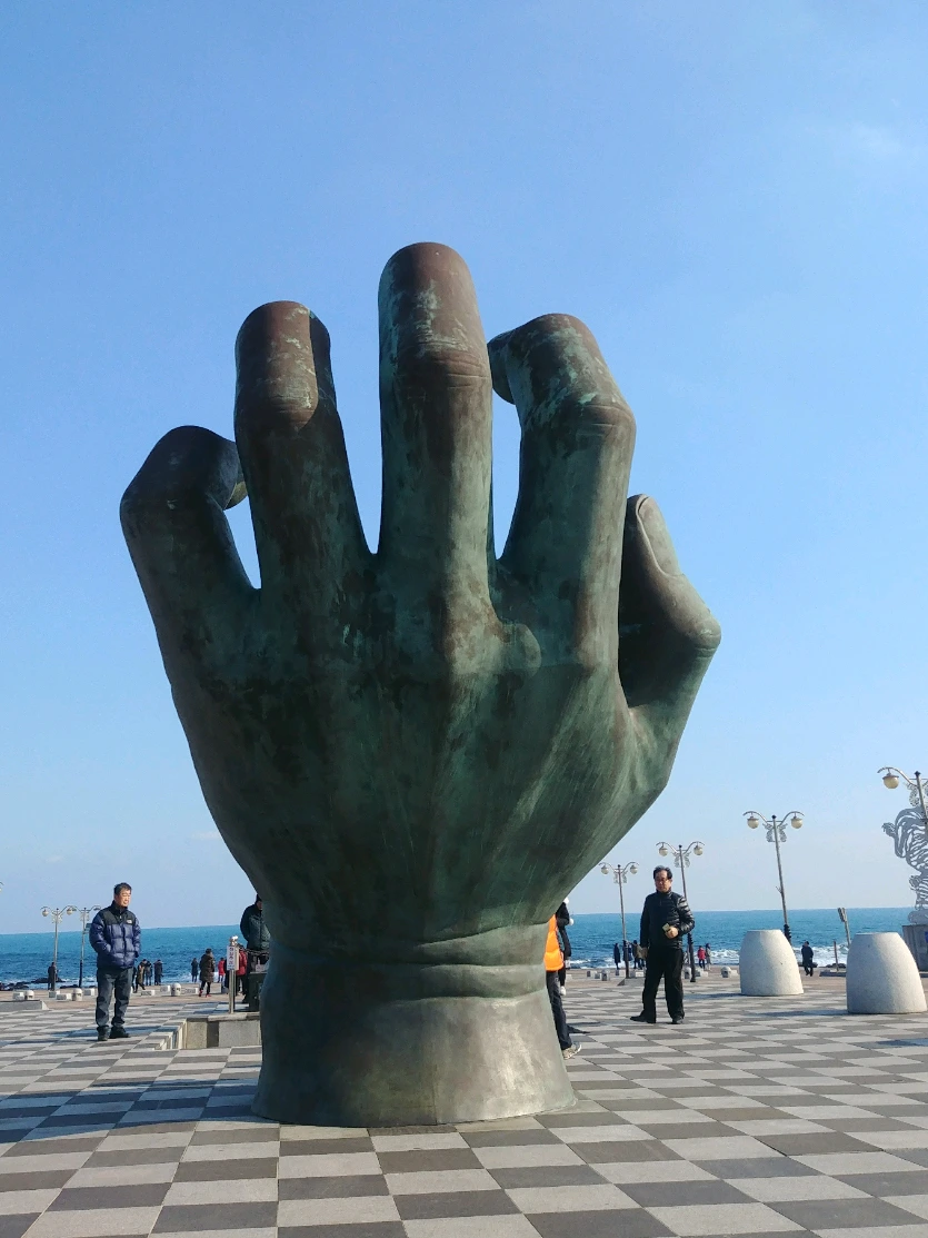 온인류가 함께 더불어 살아가자는 의미로 바다에는 오른손, 육지에는 왼손 조각상을 세웠다.