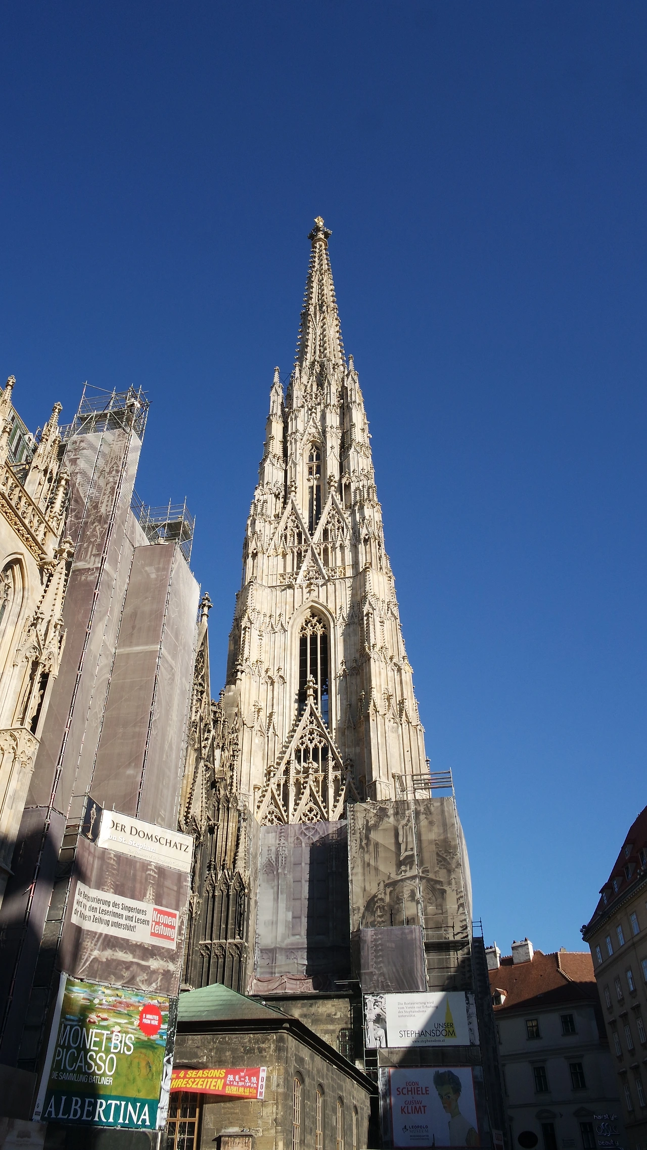 고된 여행 중 휴식시간 같았던 성당에서의 시간. 슈테판 성당을 나와서는 아쉬운 마음에 성당을 빙 한바퀴 둘러 걸었다. 슈테판 성당 곳곳에는 가림막이 설치되어 있었다. 아직까지도 개보수 공사가 한창인가보다.