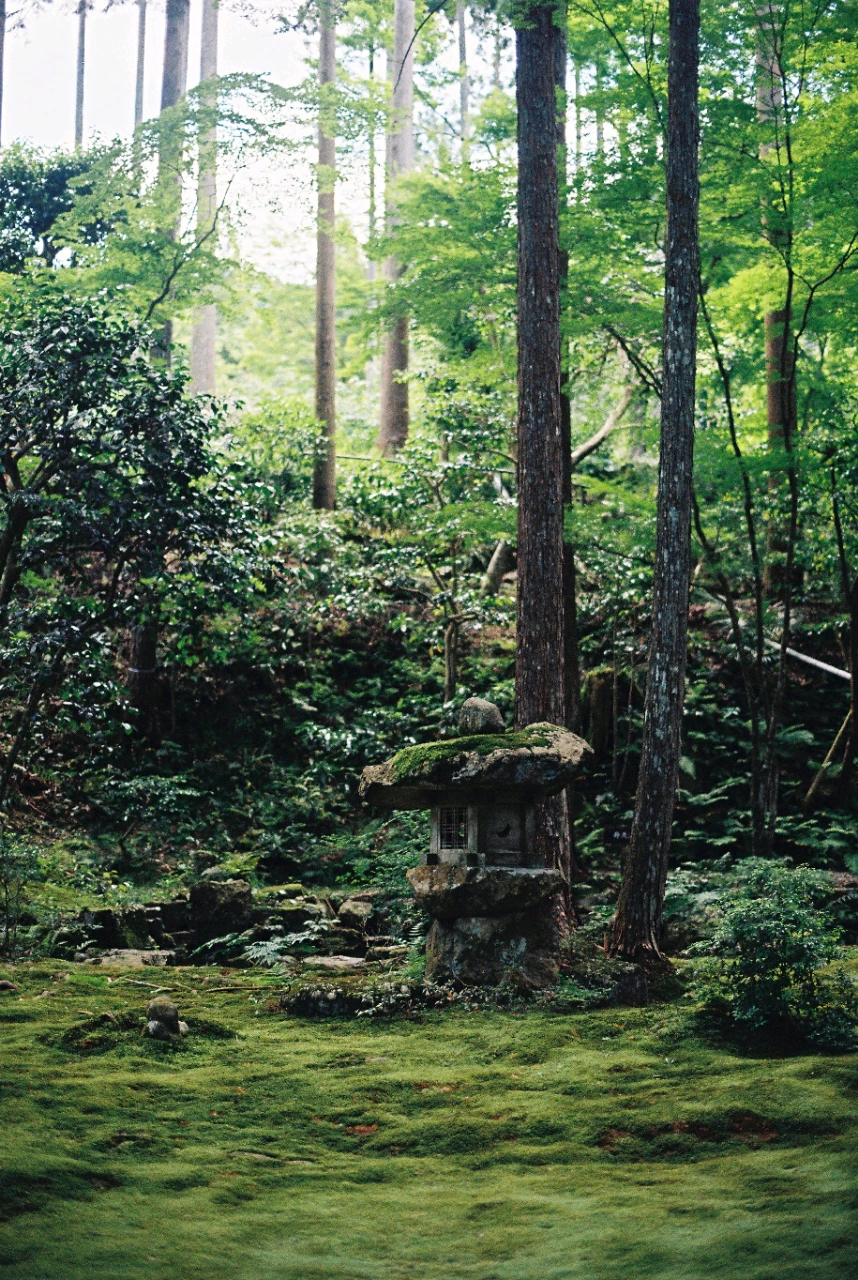 푸른 이끼 사이로 신비로운 동자승이 웃음짓고 있던 산젠인,