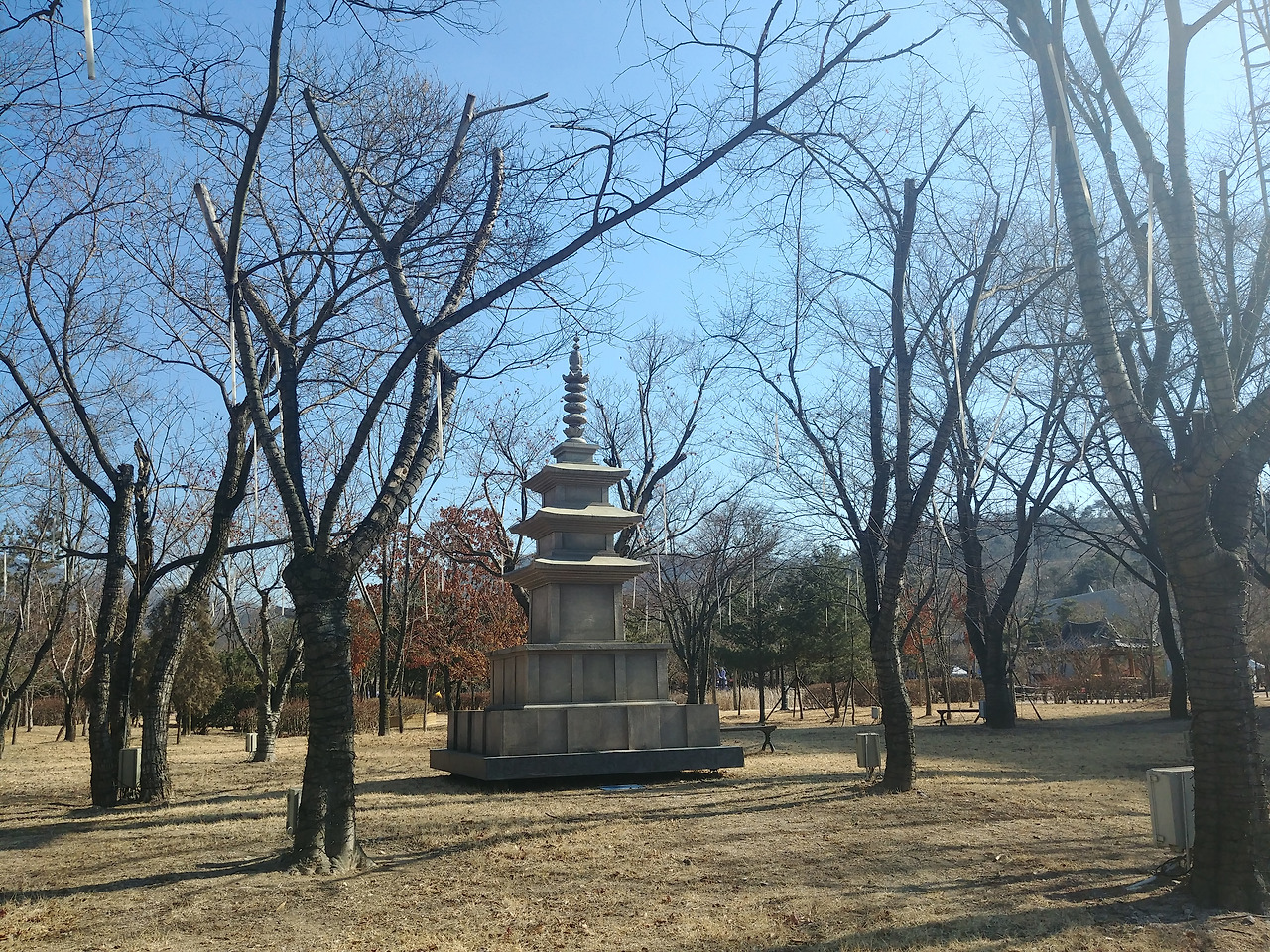 잎파리 하나 없는 헐벗은 나무들 사이에 석가탑 모형이 외로이 서있었다.