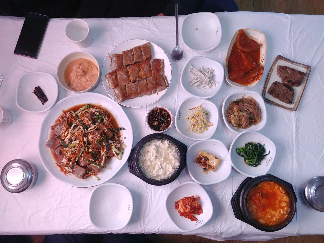 몽글몽글 순두부와 얼큰 순두부, 메밀전병, 도토리묵을 시켰다.