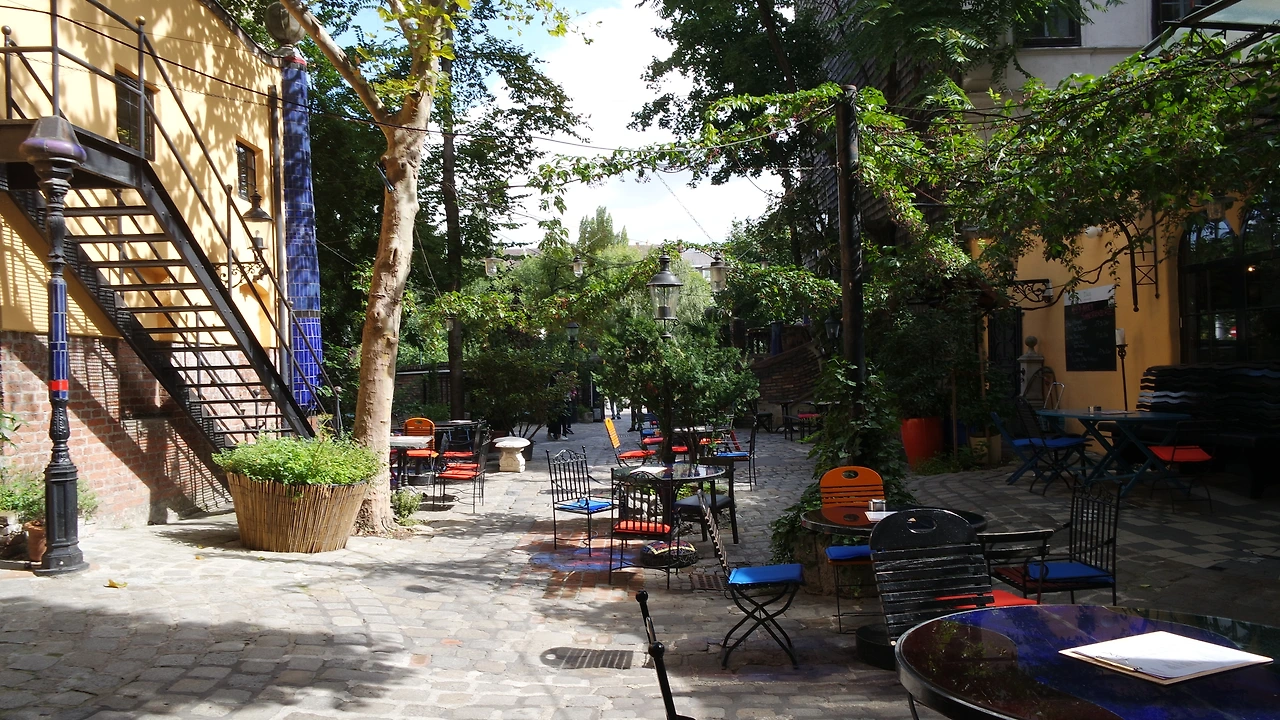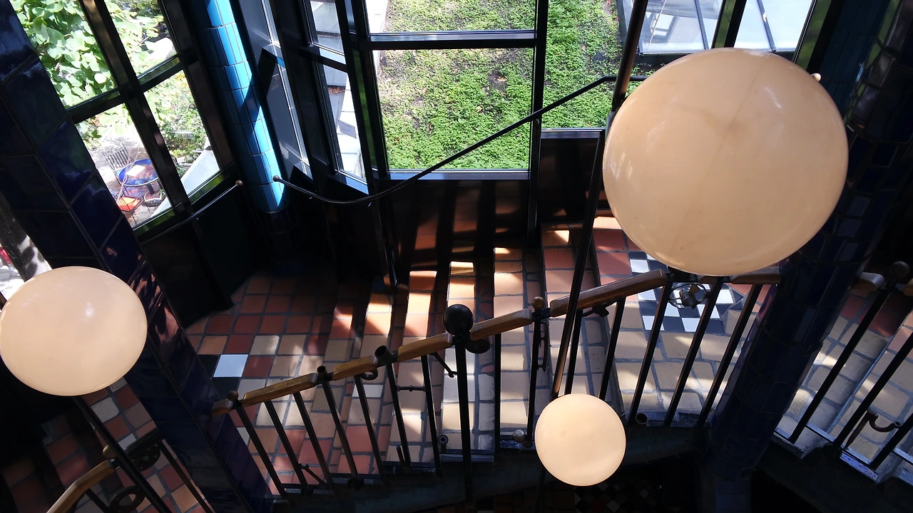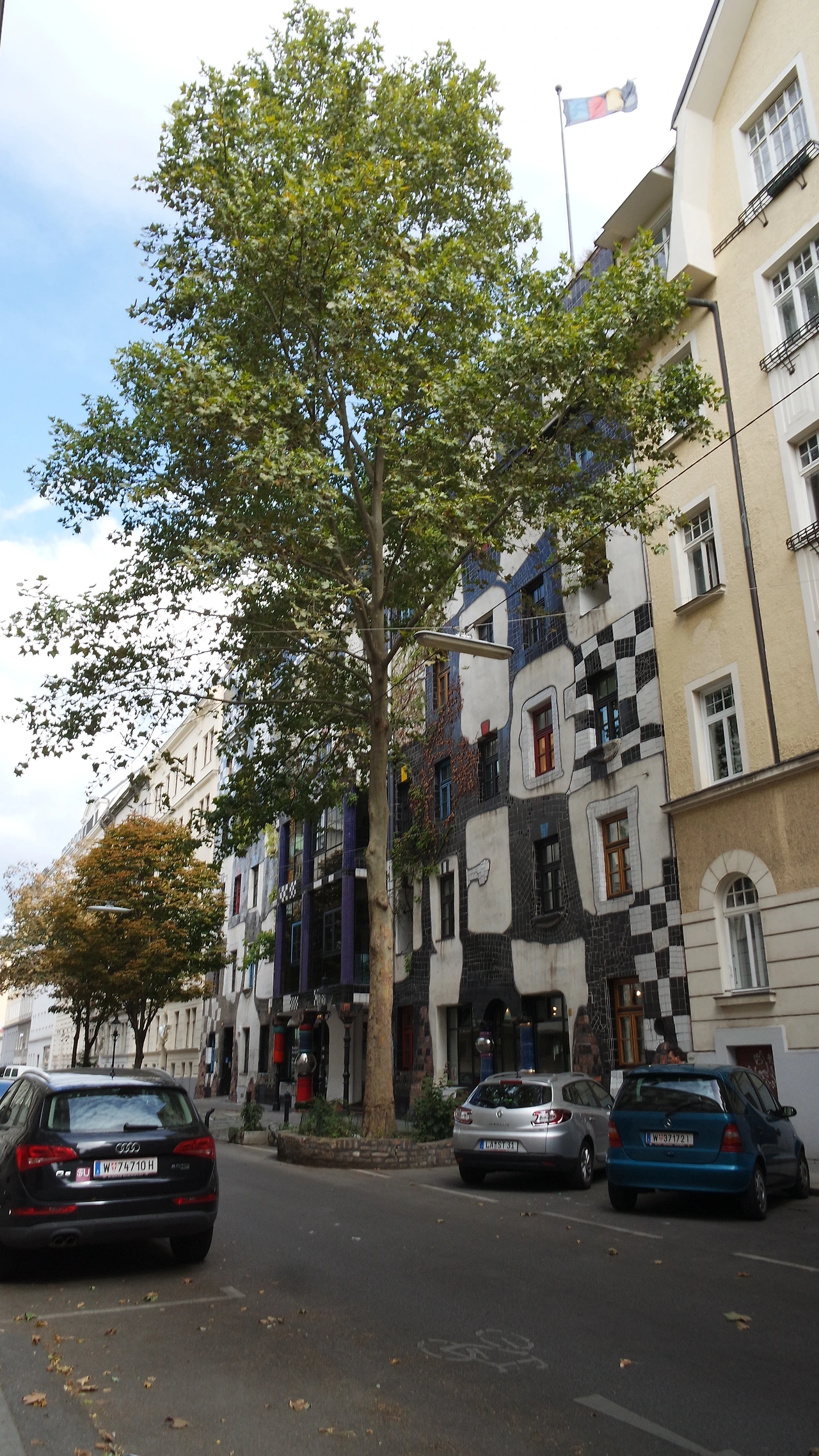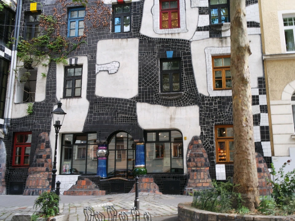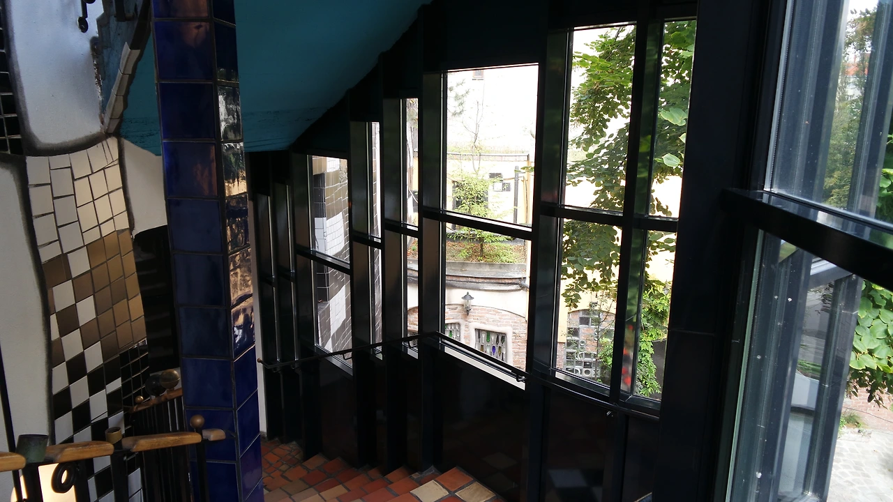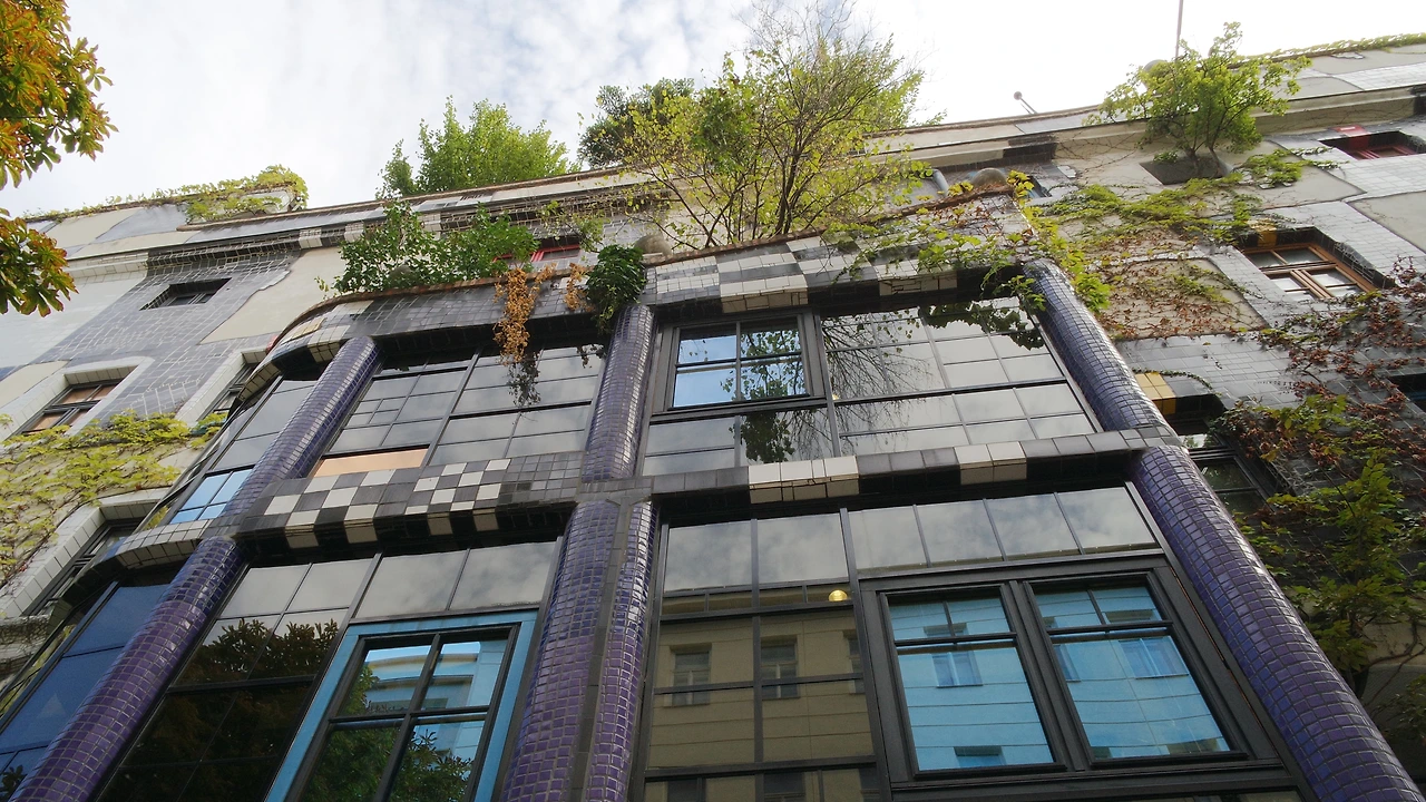 건물을 비집고 튀어나온 나무들이 훈데르트 바서를 떠오르게 한다