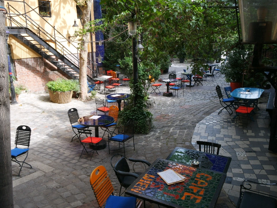 쿤스트 하우스 안에 있는 카페 야외 테이블