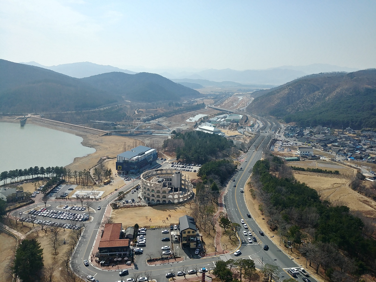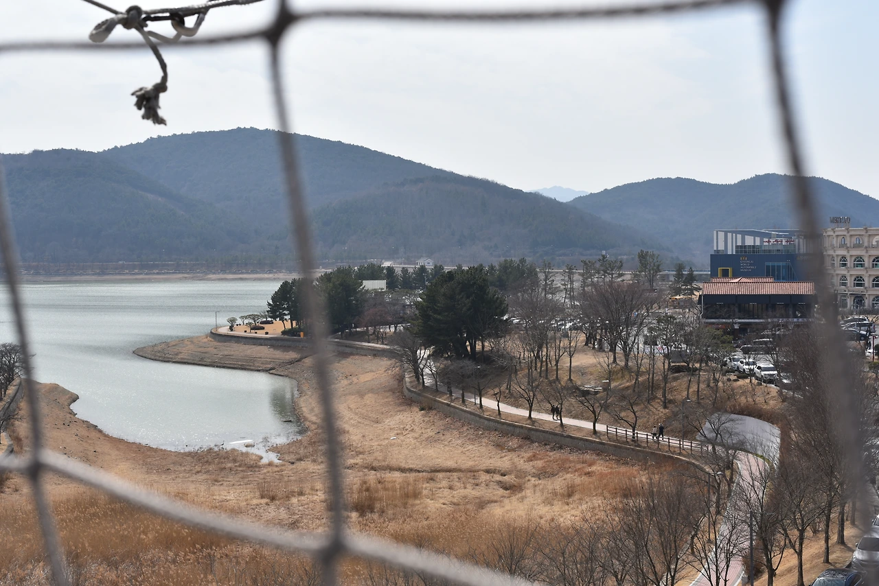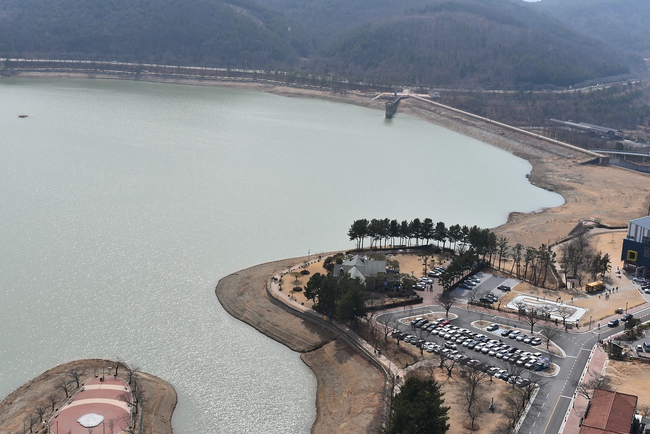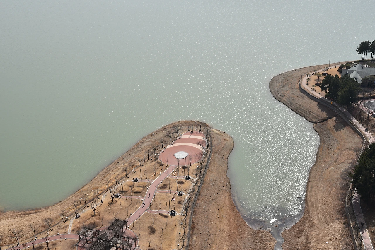 위에서 내려다보니 보문호는 푸르스름한 빛깔이다.
