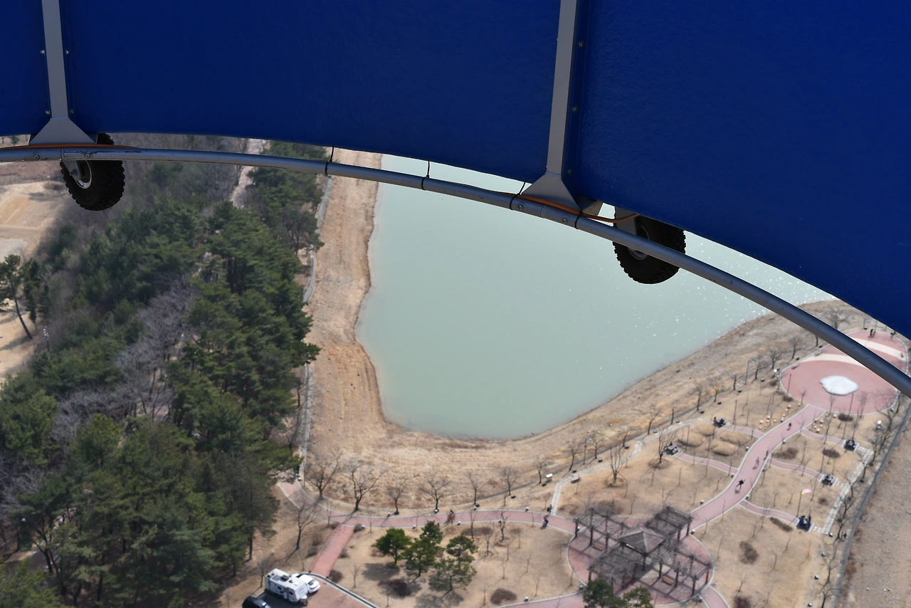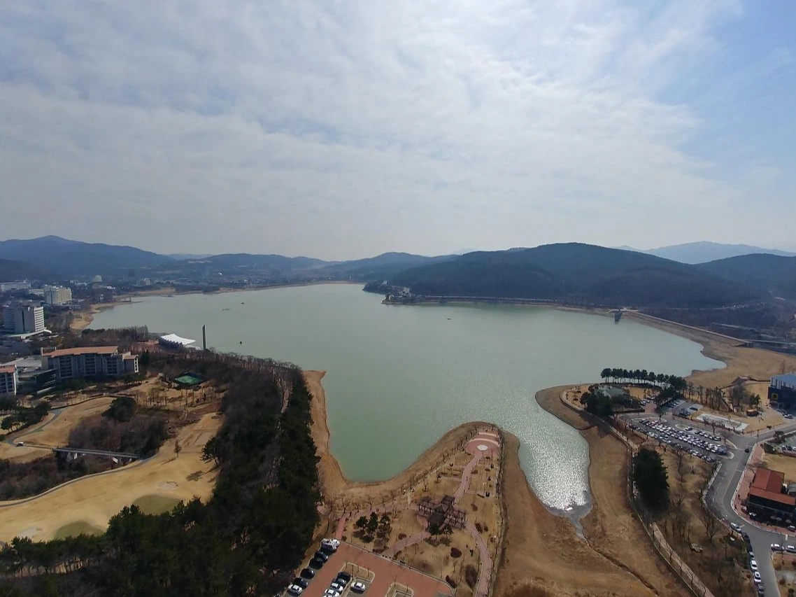 열기구를 타고 높은 하늘 위에 올라서 내려다보니 보문호의 크기가 비로소 가늠되더라.