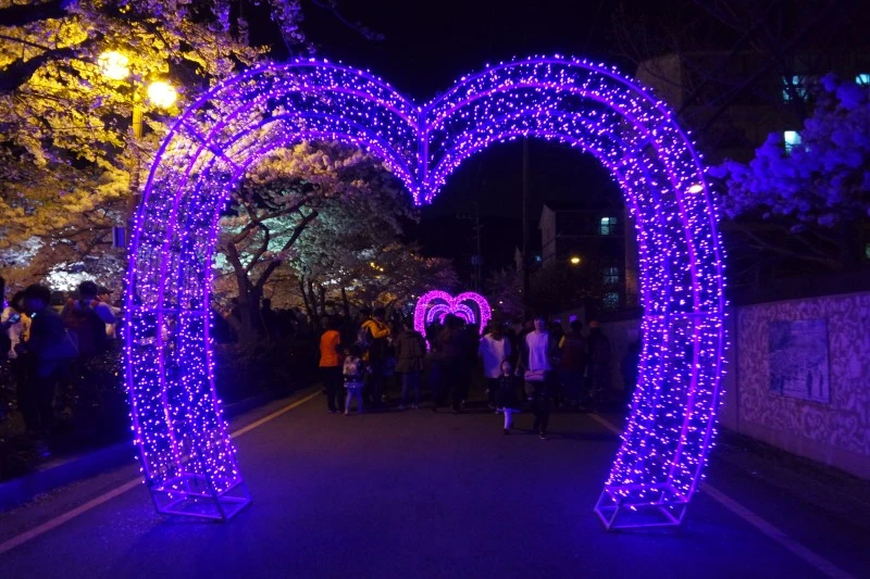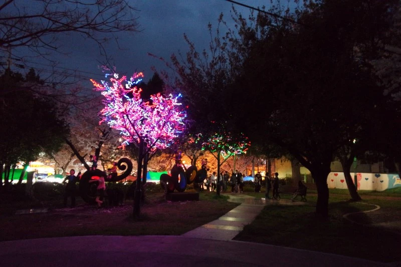 다양한 색의 전구들을 입힌 나무들이 가득했다.