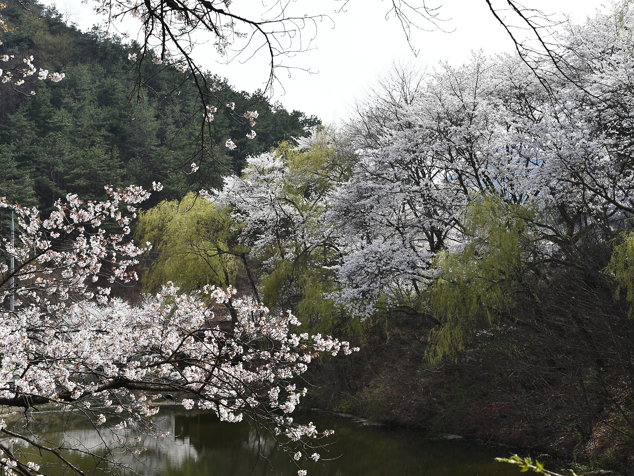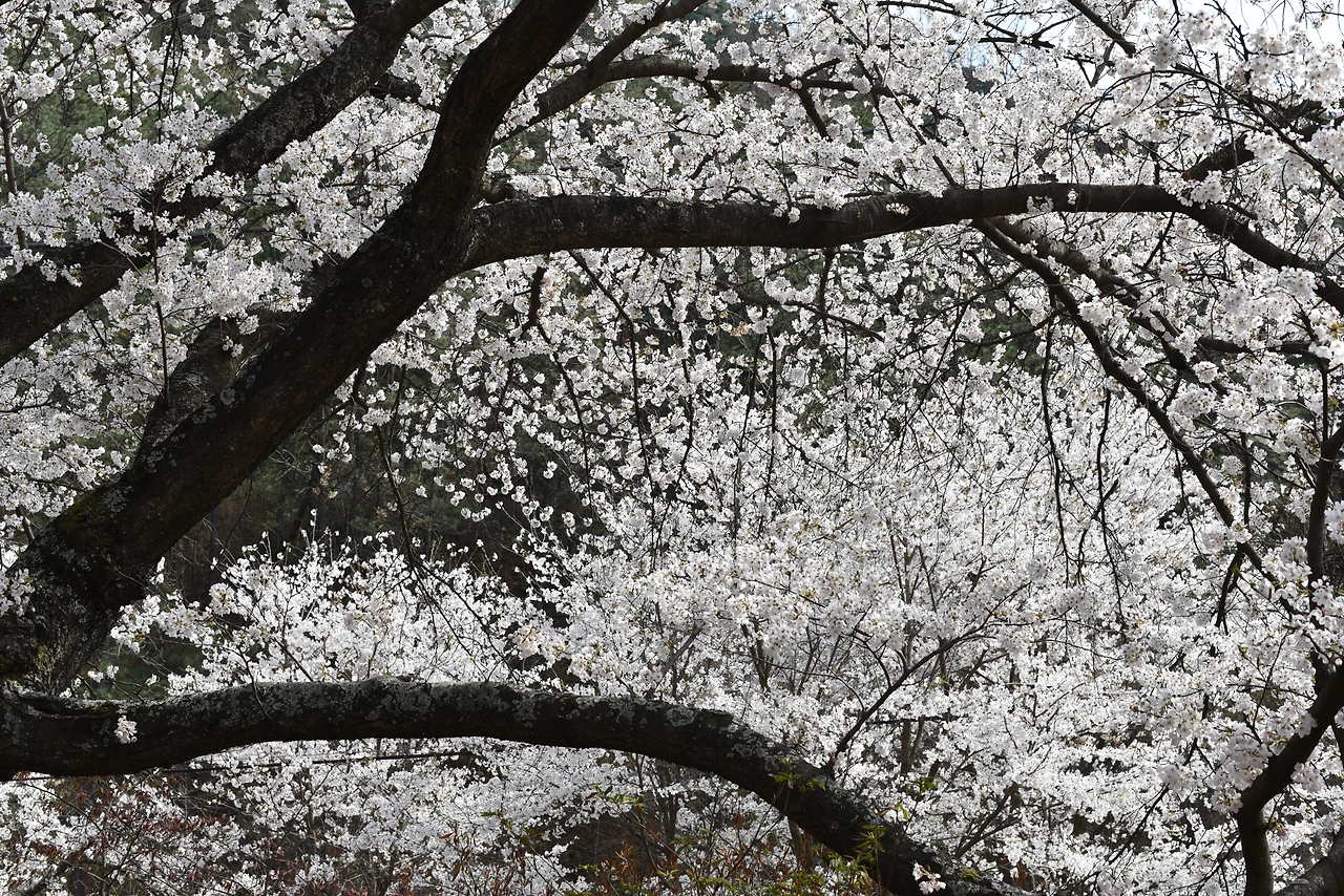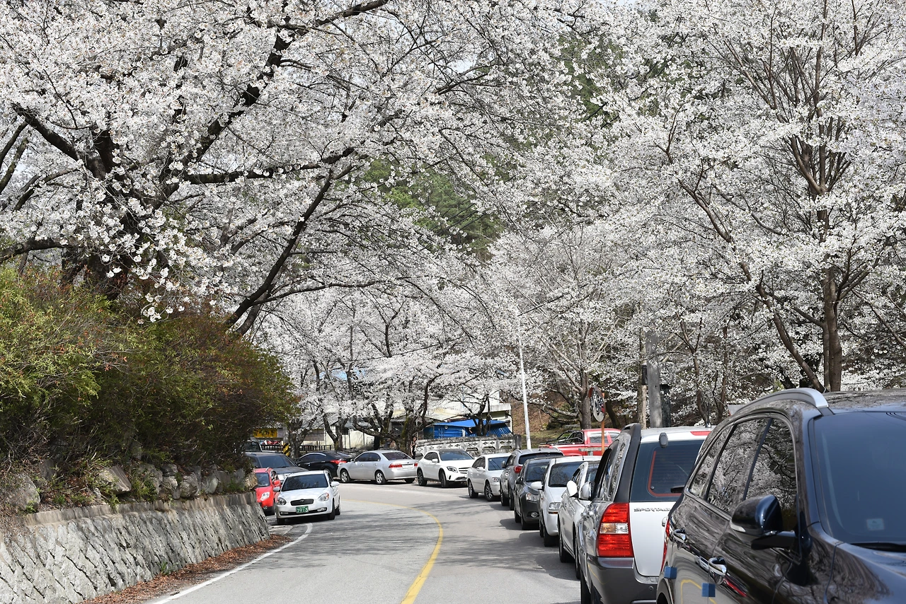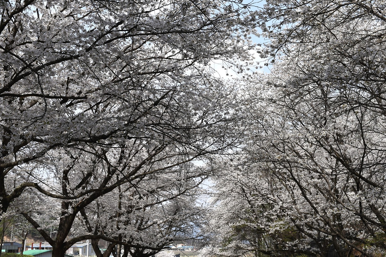 하얀 구름처럼 몽실몽실 활짝핀 벚꽃 아래로