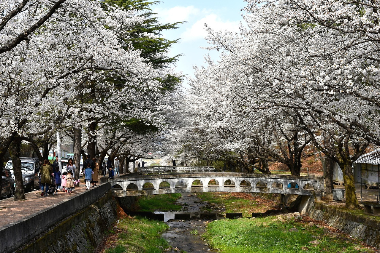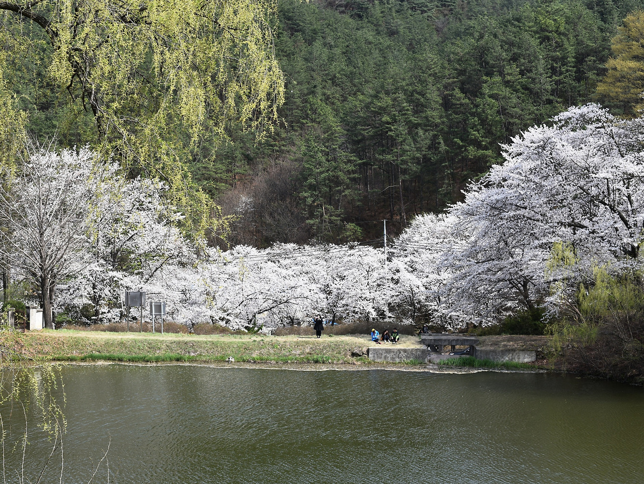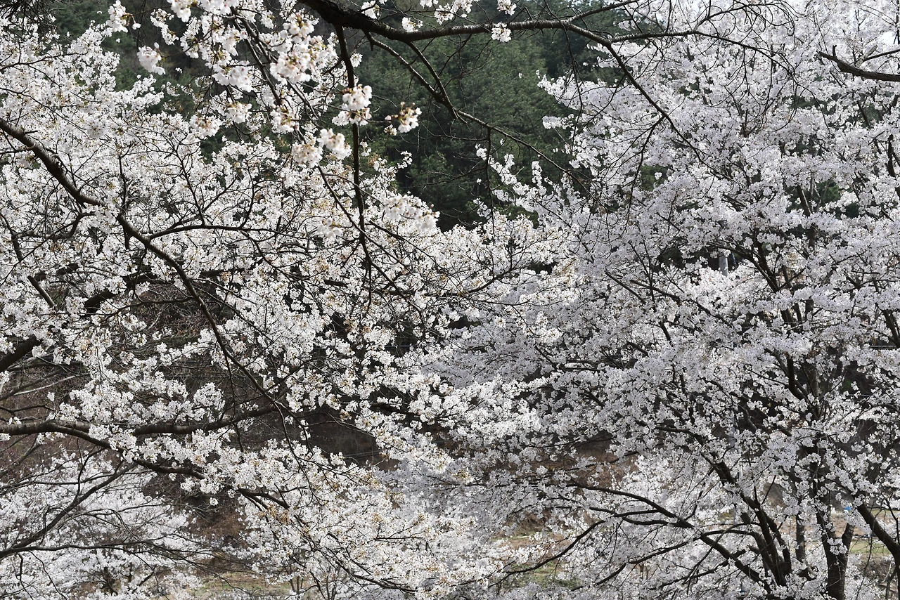 하얀 구름처럼 몽실몽실 활짝핀 벚꽃 아래로