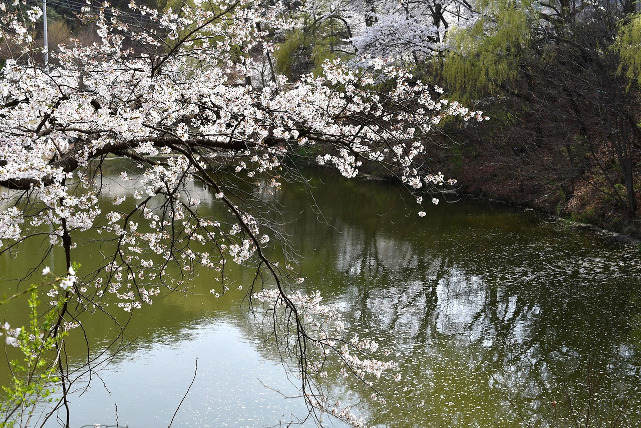 그 위로 하얀 벚꽃잎들이 떨어져 있었다.