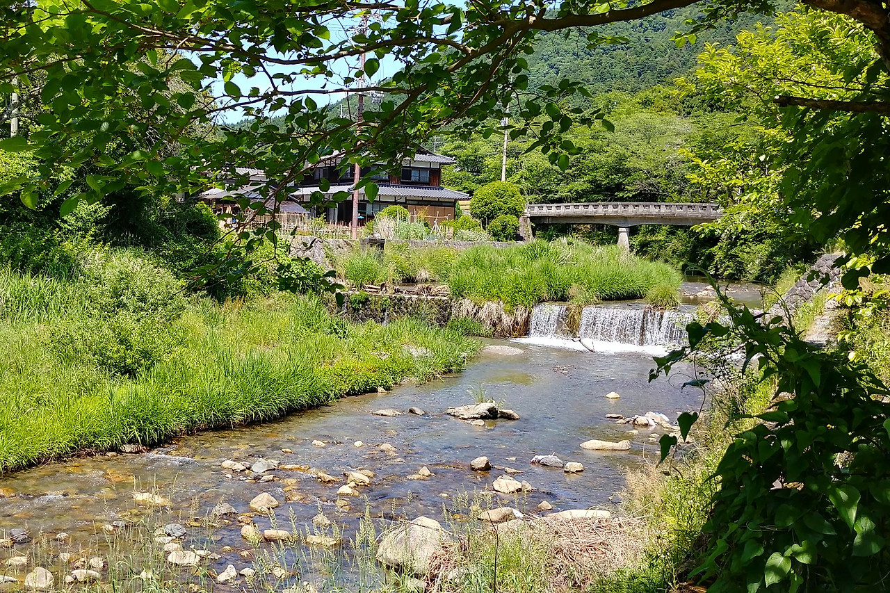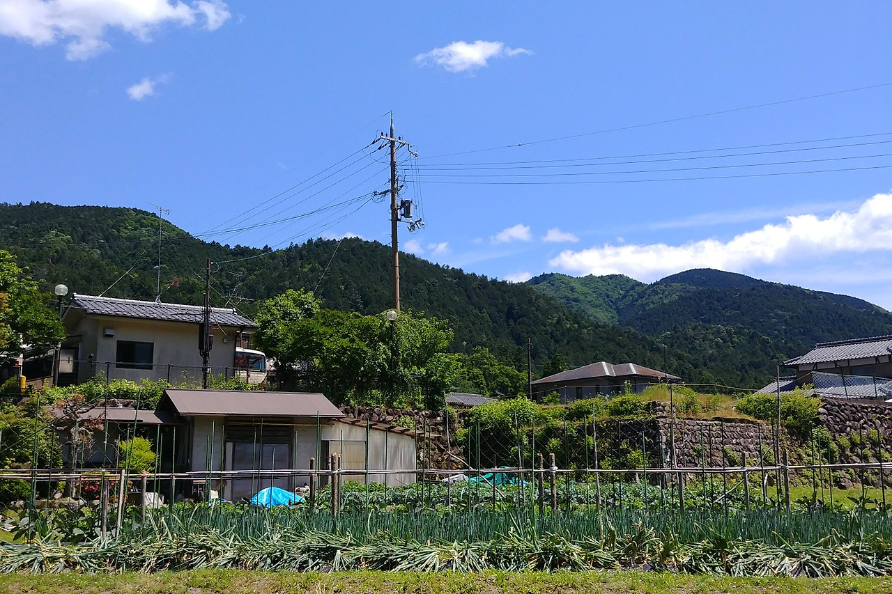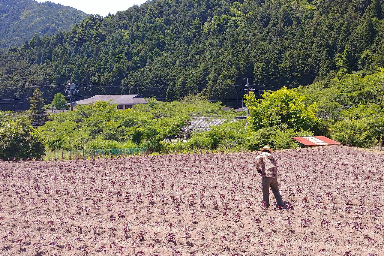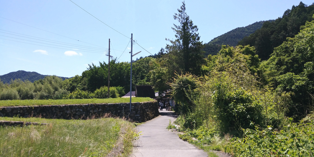 울창한 산과 밭의 풍경들과 함께 걷기.