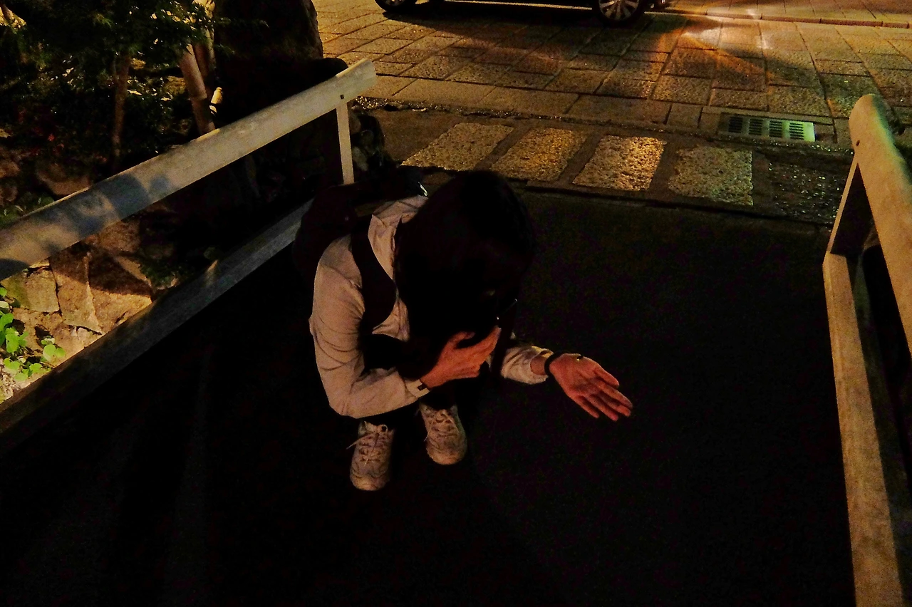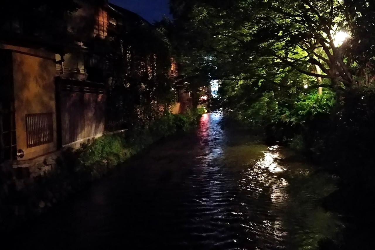 차를 타고 달려가 기온 시라가와 부근에서 내렸다.