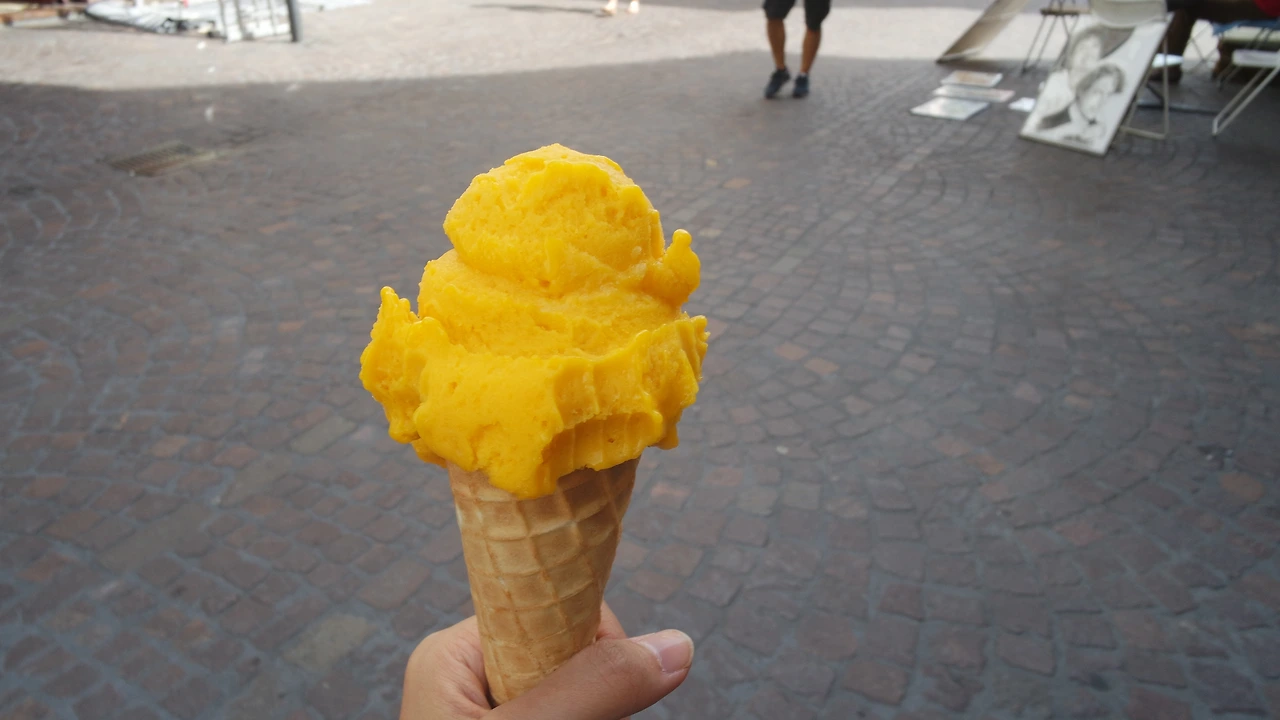 걷다 보니 슬슬 배고파져오는 나의 배. 길을 거닐다가 홀린듯이 아이스크림 파는 매장 앞에 멈춰 섰다. 젤라또 한스쿱, 노란 망고맛 녀석을 주문했다. 어찌나 맛있던지 콘까지 모조리 싹 다 먹었다. 고작 아이스크림 한스쿱 뿐인데도 배가 꽤 찼다.