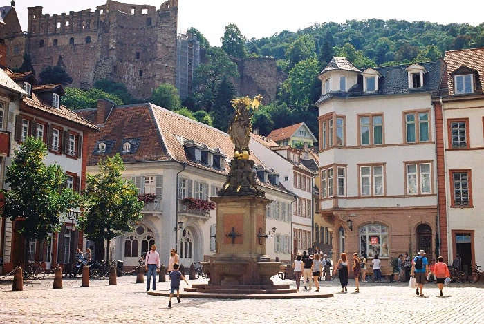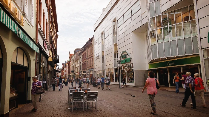나는 비스마르크 광장(Bismarkplatz)에서 내리기로 했다. 구글 지도를 보니 이곳에서 내리면 시내 구경을 하며 하이델베르크 성에 걸어갈 수 있겠다 싶었기 때문이다. 트램이 멈추고 이 역에서 사람들이 우르르 내려서 안심하며 따라 내렸다. 비스마르크 광장역 트램역에서 내리면 H&M 매장이 보이고 그 사이로 북적거리는 옛스런 길이 보였다.